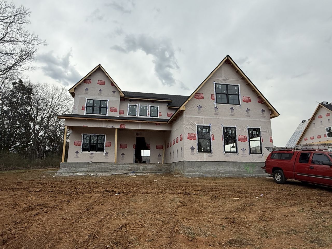 Surrey Homes is excited to be expanding into a new subdivision, offering their beautifully designed homes with 3-car garages and spacious, thoughtfully crafted floor plans. As a trusted local builder, Surrey Homes is known for exceptional quality and higher-end finishes throughout. Conveniently located off Stewart Creek. The exterior showcases timeless Artice White Hardie board siding paired with striking black windows, creating a clean, modern farmhouse aesthetic. Enjoy relaxing mornings on the welcoming covered front porch and peaceful evenings on the spacious covered back porch.The thoughtfully designed open floor plan is filled with natural light thanks to an abundance of windows throughout the home. The heart of the home is the gorgeous kitchen, featuring white quartz countertops, a custom cabinet vent hood, and a large walk-in pantry-perfect for both everyday living and entertaining. The kitchen flows seamlessly into a generous breakfast room and the main living area. The main level includes a private primary suite, a convenient half bath for guests, and a versatile flex room ideal for a home office. Large laundry room designed for everyday convenience. Upstairs, you'll find spacious bedrooms. Additional highlights include a three-car side-entry garage, beautiful finishes throughout, and a layout that blends comfort, functionality, and style. Home is framed with windows installed installed and mechanical, electrical, and plumbing. ***Photos of completed home in media are of a previous built Ensley in another community and for illustration purposes ONLY. Colors/Finishes may vary. Contact list agent for additional details and included features. See cabinet drawing in document section. Ceiling wood beams in living room and shelves/storage adjacent to the fireplace included.