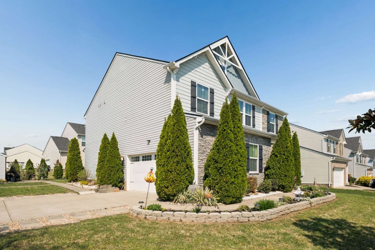 Welcome to this stunning corner-lot home in Murfreesboro, TN, where modern design meets cozy, everyday living. This beautifully maintained two-story home offers 3 bedrooms, 2.5 bathrooms, and exceptional curb appeal with meticulous landscaping that makes a lasting first impression. Step inside to discover a bright, open-concept layout perfect for both entertaining and daily life. The spacious living room features a gas fireplace and stylish feature wall, creating a warm and inviting atmosphere. The chef-inspired kitchen boasts granite countertops, a large island with seating, stainless steel appliances, and a matching tile backsplash - flowing seamlessly into the sunny breakfast room that can also serve as a relaxing sunroom. A separate main-floor office with French doors provides the ideal work-from-home space, while the oversized formal dining room is perfect for hosting gatherings or enjoying everyday meals. A convenient powder room completes the first floor. Upstairs, the private primary suite offers a true retreat with a walk-in shower, double vanity, and two walk-in closets. Two additional bedrooms share a full bathroom, and the upstairs laundry room adds everyday convenience. A versatile bonus/flex room provides endless possibilities for a media room, home gym, or playroom. Enjoy outdoor living on the backyard patio - perfect for BBQs and entertaining this summer - plus a storage building for tools and extra space. This home is conveniently located between Manchester Pike and I-24 for easy commuting, and only minutes from everything downtown Murfreesboro has to offer. This Murfreesboro home blends modern features with comfort and functionality - don't miss your chance to make it yours!