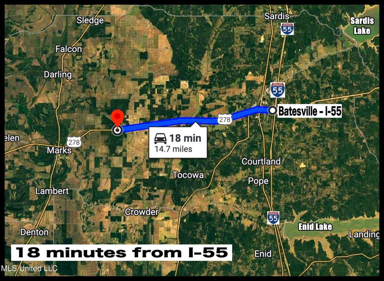 Welcome to the Bobo 143.It's almost unheard of to find solid duck, deer, AND turkey hunting on a single property within 20 minutes of I-55 and less than 45 minutes from Oxford and Ole Miss. But this tract truly has all three. Located on Highway 6 west of Batesville just inside the Quitman County line, Bobo Ditch (the Little Tallahatchie) runs along the eastern boundary of the property providing a year-round water source and a heavily traveled corridor for wildlife.The gated property has a gravel parking lot and an established wide road system. There are several food plots and duck holes already planted in beans along with golden and Japanese millet.98 acres are enrolled in the CRP program with an annual payment of $11,622 through September of 2030. A true sportsman's paradise, you'll have something to do in every season. Along with deer, dove, turkey, duck, and small game hunting, there's also a graveled boat ramp on the property for accessing Bobo Ditch. The ditch runs into the Coldwater River & then flows into the Tallahatchie. If you wanted a day of adventure, you could just hop in a boat and take the Bobo to the Tallahatchie and catch some big flatheads or just enjoy the scenery along the way.The duck holes flood naturally, and there are structures in place to maintain the water levels. The surrounding properties are all large landowners and crop ground, adding appeal to the property. Between the food plots, deer stands, duck holes, and miles of solid roads, this property is turnkey ready and waiting for an incredible hunting season.***Location: * 14+ miles west of Batesville & I-55* 35 miles west of Oxford * 68 miles southwest of Memphis International Airport* 160 miles north of Jackson, MS*** Access: * 1250 yards of highway frontage on MS 278 (Highway 6)* two entrances from the highway with the main one being gated*Area Electricity Provider: Entergy