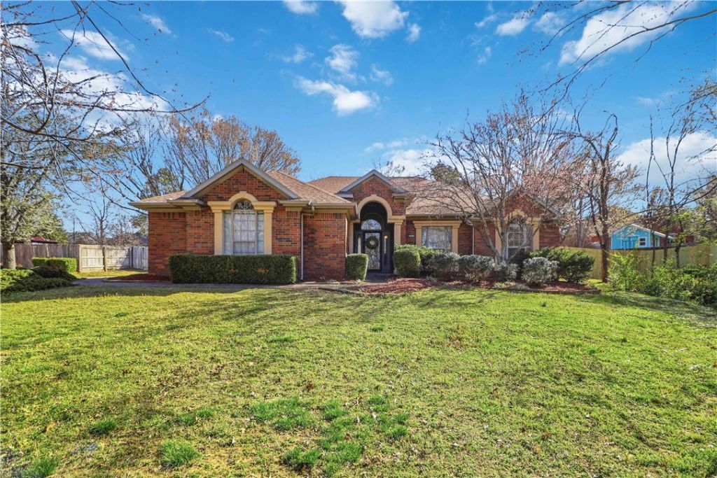 This unbeatable location?is just minutes from the vibrant downtown Fayetteville square, I-49 and just steps from the Fayetteville Country Club! This beautiful one-level home offers 3 spacious bedrooms, 2.5 bathrooms, and a desirable side-load 3-car garage. The eat-in kitchen features a center island, built-in desk, stainless steel appliances, and plenty of counter space?perfect for cooking and casual dining. Entertain in style in the spacious living room showcasing high ceilings, a central fireplace, and a layout that flows into the formal dining room accented with crown molding. A true home office with French doors and a coffered ceiling makes working from home both functional and elegant. The large primary suite offers high ceilings, laminate wood flooring, a spacious bath with double vanities, a corner whirlpool tub, walk-in shower and spacious walk-in closet. The secondary bedrooms are generously sized. Nestled on a serene 0.58-acre lot offering plenty of privacy and outdoor potential.