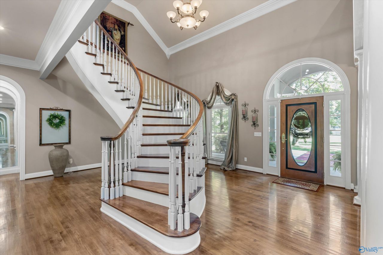 Executive home with private apartment and 4-car garage on nearly ¾ acre in Huntsville, Alabama ideal for relocation buyers moving to Redstone Arsenal or Space Command. Features include vaulted ceilings, spiral staircase, oversized eat-in kitchen, upstairs office, and solid wood doors. Detached pull-through garage includes a fully separate apartment perfect for guests, multi-generational living, or private workspace. Circle drive, covered breezeway, updated systems, and transferable warranty. Offers privacy, flexibility, and convenient access to Huntsville's major employers including Huntsville Hospital, military, and research centers.
