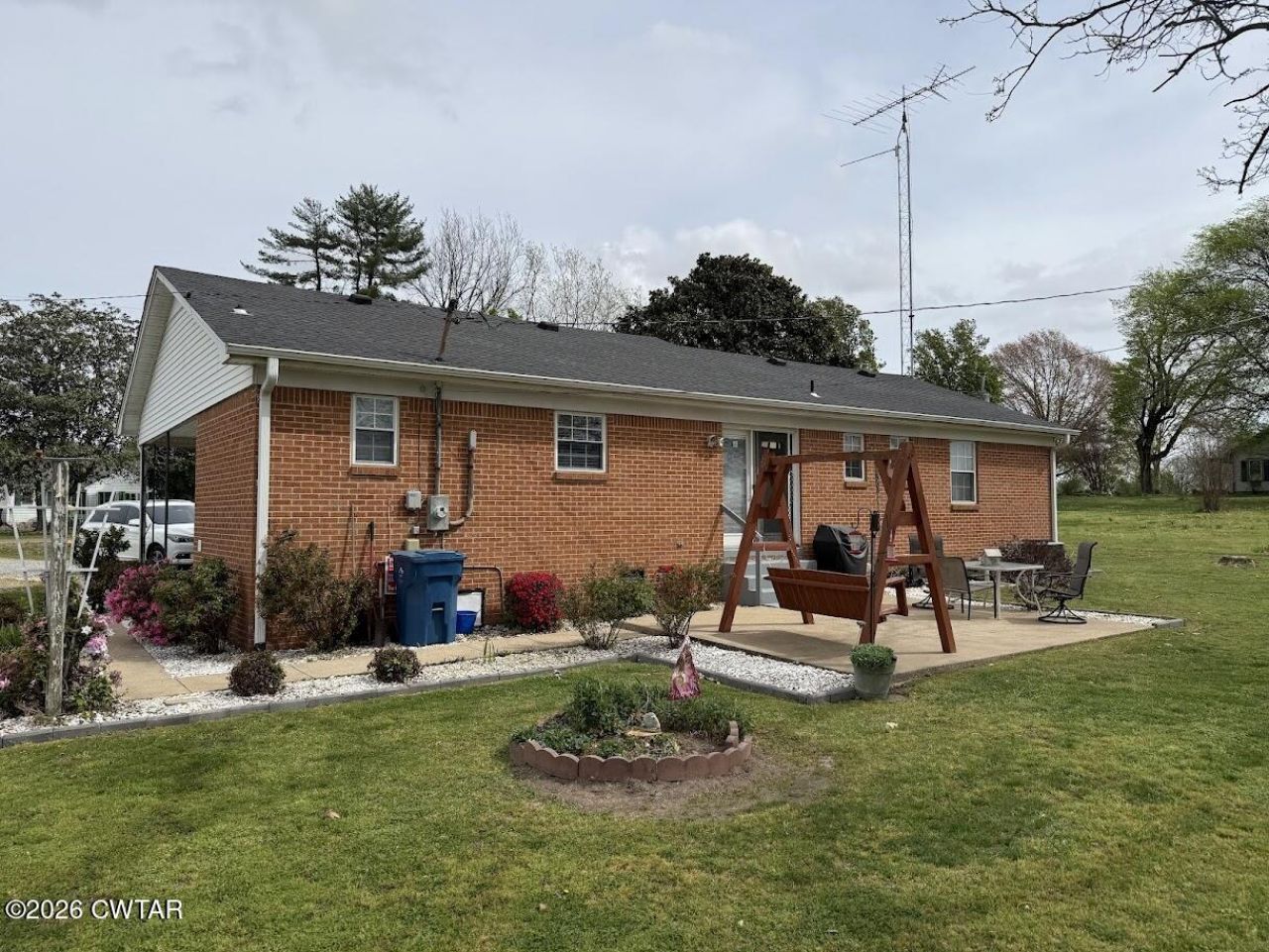 This charming single-story brick ranch home sits nestled in a serene country setting, offering 3 bedrooms and inviting curb appeal with its warm red brick exterior, crisp white siding accents, and dark shingled roof. A covered carport provides convenient parking, while the spacious concrete patio in the back features a large wooden A-frame swing, and a place for your outdoor dining set and grill?perfect for relaxed entertaining amid the lush green lawn. Well-maintained flower beds with vibrant pink and red blooms line the walkway, complemented by a circular garden in the yard and mature trees dotting the expansive, open landscape. With its classic rural charm and peaceful surroundings, this home feels like a true countryside retreat.