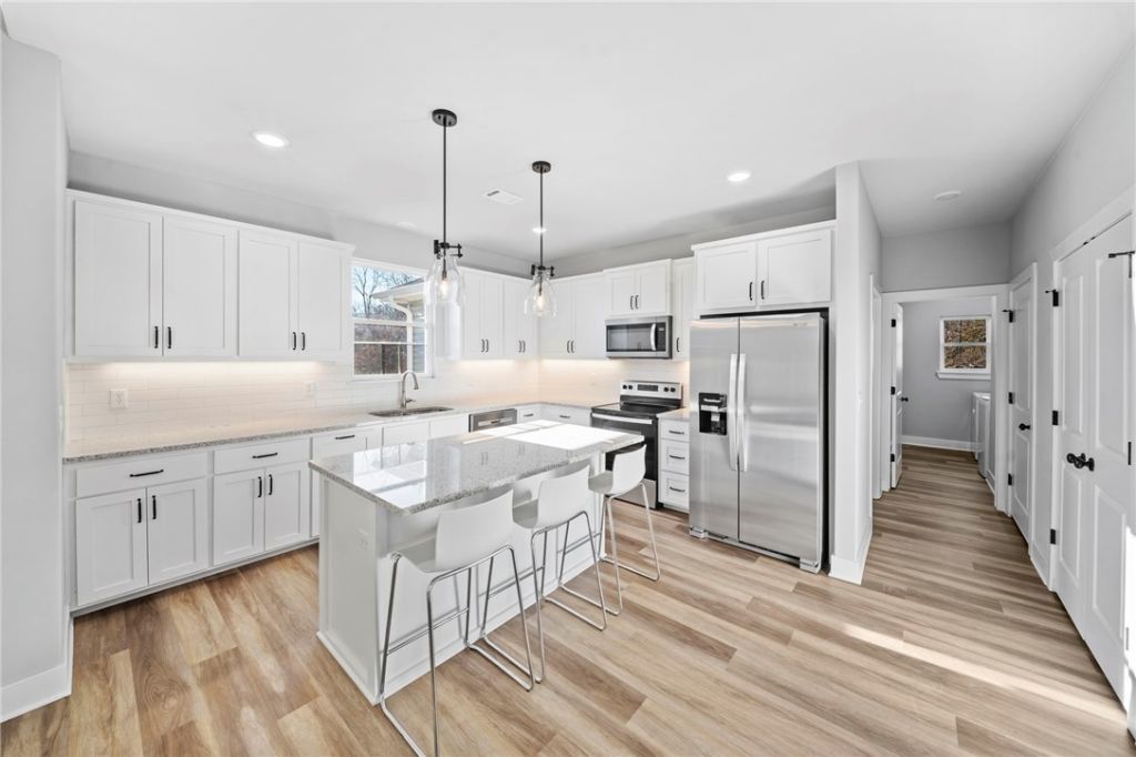 This inviting 4-bedroom, 2-bath home is tucked away on a quiet circle above Loch Lomond, offering a peaceful setting with easy access to nearby amenities. Enjoy scenic views from the spacious deck?perfect for relaxing or entertaining. Inside, the home features an open-concept design with a thoughtfully planned split-bedroom layout, offering both connection and privacy. The home exhibits a well-designed kitchen with a large island, ample counter space, and a double-door pantry. Sleek flooring runs throughout the home, adding a clean, modern touch. The owner's suite provides a comfortable retreat with a tiled walk-in shower, while additional bedrooms offer generous space and walk-in closets. A charming opportunity to enjoy comfortable living near the lake. The additional parcel has been cleared while preserving mature trees, with fresh topsoil added and grass seed recently laid. Bring your vision to life with much of the groundwork already in place.