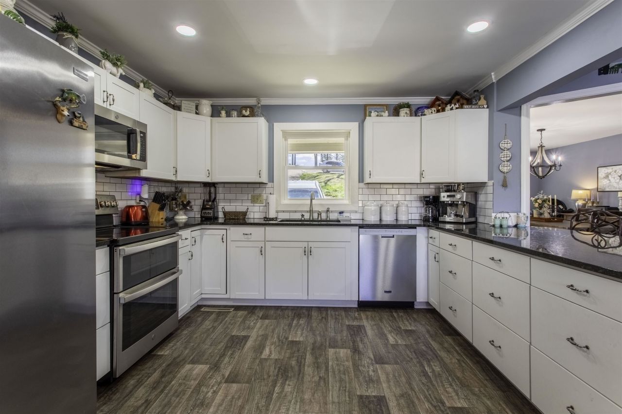Price Reduced!! Spacious lakefront home with water views from most rooms. Features three private bedroom suites, each with its own bath and lake views. New shingles in 2023 and freshly painted throughout make this home move-in ready. Open floor plan with separate dining area is ideal for entertaining while enjoying the lake scenery. Sliding glass doors span the main level and open to the deck, with fireplaces on both the upper and lower levels. Main level updates include new cabinets, countertops, and appliances. The lower level offers a separate living area with kitchenette, bedroom, and bath, perfect for guests or extended family. All bedrooms have lake views, some with walkout access to upper or lower decks. Enjoy the patio above the dock, gather around a fire, or access the water directly from your private dock. Located on a quiet cul-de-sac in a protected cove with minimal boat traffic. Split floor plan with primary suite featuring double sinks and large closet. All baths have walk-in showers except the half bath. Additional storage in crawl space and shed. Circular drive provides easy access and extra parking. watch virtual tours-there is 2!