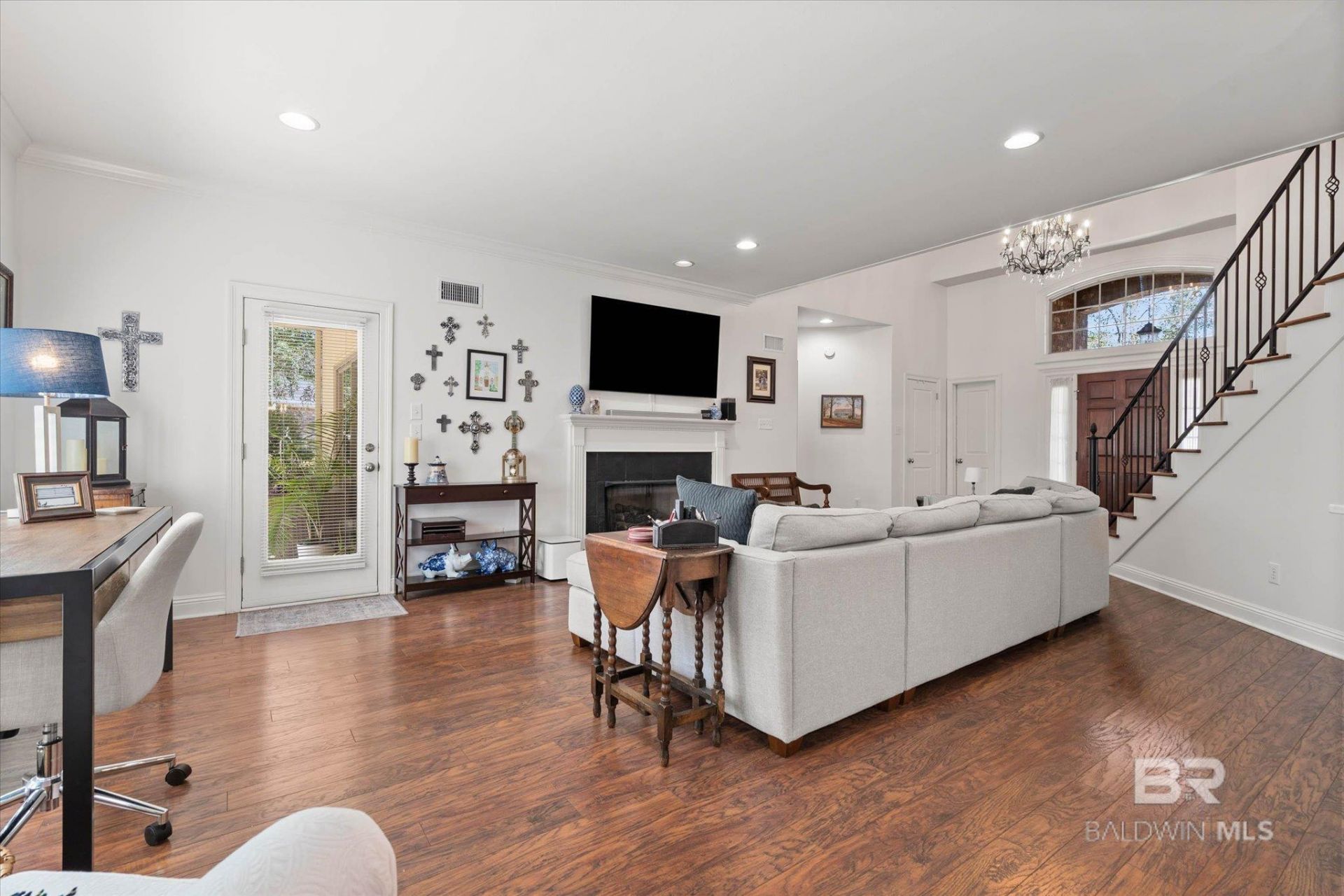 Beautifully updated 4-bedroom, 3.5-bath home located on the beautiful golf cart trail of the Rock Creek Golf Course. This well-maintained property offers golf course views and a private backyard, along with a covered patio that provides a comfortable space for relaxing or entertaining. The interior features hardwood flooring throughout the living, kitchen, and dining areas, along with updated kitchen countertops and modern lighting that enhance the home's style and functionality. An upper-level bedroom includes a private balcony overlooking the golf course, offering an additional space to enjoy the surroundings. Recent improvements include a full-house generator installed in 2022, a new A/C and HVAC system in 2022, a roof approximately 6?8 years old, and a recently redone driveway. The property also offers a large garage and generous interior storage space throughout. Conveniently located near the amenities of the Rock Creek community and all that Fairhope has to offer, this property provides flexibility for a variety of lifestyles. Buyer to verify all information during due diligence.