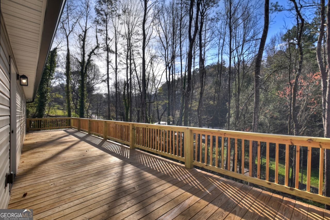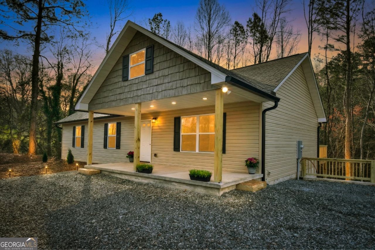 ENJOY DOWNTOWN LIVING in this beautifully crafted, WELL-APPOINTED NEW CONSTRUCTION RANCH-STYLE HOME just minutes from the heart of Ellijay! Perfectly positioned less than five minutes from downtown, this property offers the ideal blend of CONVENIENCE AND TRANQUILITY with a peaceful wooded backdrop. This thoughtfully designed 3 BEDROOM / 2 BATH home features a welcoming covered front porch, low-maintenance vinyl siding, energy-efficient windows, and 25-year architectural shingles, all complemented by a desirable STEPLESS ENTRY into a spacious OPEN-CONCEPT FLOOR PLAN with vaulted ceilings. Inside, you'll find upscale finishes throughout including luxury vinyl plant flooring, quartz countertops, stainless steel appliances, custom soft-close cabinetry, a large island, and designer lighting. The kitchen also boasts a generous walk in pantry with custom shelving and a conveniently located laundry area. Step out onto the expansive FULL-LENGTH BACK DECK and enjoy the natural beauty of the hardwood-lined backyard-perfect for relaxing or entertaining. The guest bedrooms are generously sized and share a well-appointed hall bath with tub/shower combo and brushed bronze fixtures. The primary suite offers a walk-in closet and a private bath featuring double vanities with granite countertops and a beautiful tile shower. The FULL DAYLIGHT BASEMENT provides incredible potential, already framed and stubbed for a bathroom-ideal for future expansion, additional living space, and storage options. Located within city limits yet tucked away in a quiet setting, you're less than half a mile from shopping, dining, apple houses, vineyards, hiking trails, and DOWNTOWN ELLIJAY. Additional perks include FREE GARBAGE PICKUP, NO CITY TAXES, and for homeowners over 65, NO SCHOOL TAX-making this home an exceptional value in a highly desirable location. MODERN COMFORT. PRIME LOCATION. RANCH LIVING AT ITS BEST.