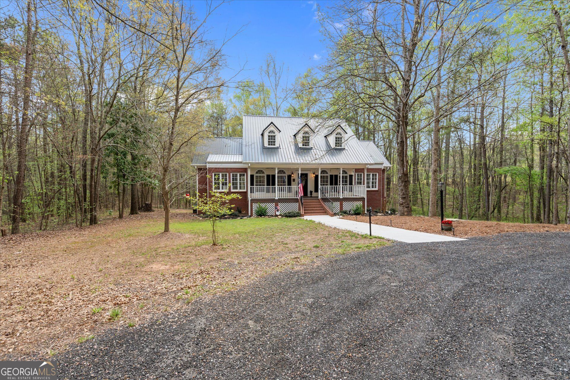 Welcome to a truly serene and stately private estate nestled on 18.56 beautiful acres in Roopville, where a gently flowing creek, open pasture, and hardwood privacy create a setting that feels both peaceful and refined. Tucked away from the road and approached by an inviting drive framed with azaleas and flowering trees, this property offers a rare blend of natural beauty, usable land, and timeless presence. From the moment you enter through the brick columned entrance and arrive at the circular drive, you are welcomed into a home designed for both quiet retreat and gracious living. This three story residence offers approximately 3,067 sq ft with 5 bedrooms and 3 baths, thoughtfully remodeled within the past year to reflect modern comfort while maintaining its classic character. A wide rocking chair front porch and wrought iron accented entry set the tone as you step into a spacious foyer. To the right, a versatile grand room offers the perfect space for a private office, library, or additional living area, while an oversized dining room to the left is ideal for hosting and gathering. The foyer opens seamlessly into a light filled living room where soaring ceilings and expansive windows create an airy, welcoming feel. A cozy fireplace anchors the space, while natural light pours in, bringing the outdoors in and enhancing the home's open and connected design. The kitchen is positioned just beyond the living room, designed with both function and beauty in mind, it features brand new granite countertops, a large island, marble backsplash, and an abundance of cabinetry. Surrounded by windows, the kitchen captures peaceful exterior views from every angle and flows effortlessly into the dining and living spaces, creating an ideal setting for everyday living and entertaining. A generous pantry and conveniently located laundry room add to the ease of main level living, with direct access to the brand new deck just beyond. The main level owner's suite is a retreat of its own, filled with natural light from seven surrounding windows. The en suite bath offers a refined blend of charm and luxury with a porcelain coated cast iron clawfoot tub, beautifully tiled frameless glass shower, quartz double vanities, private water closet, and a spacious walk in closet. Upstairs, three additional bedrooms offer exceptional space, each featuring dual walk in closets and abundant natural light. A fully renovated bath, new flooring, and brand new carpet throughout the upper level provide a fresh and cohesive feel. A beautifully crafted staircase connects the levels with a sense of architectural detail and flow. The finished terrace level adds incredible versatility with an additional bedroom or flex space that could serve as a media room, playroom, classroom, or private guest suite. With its own exterior entrance and covered patio area beneath the deck, this level creates a seamless extension of indoor and outdoor living. A two car garage with workshop or storage space is also located on this level, offering both function and convenience. Outdoors, the property truly shines. A brand new deck with modern open railing design provides the perfect space to relax, entertain, or simply take in the surrounding views. The land offers a beautiful balance of open pasture, ideal for horses or cattle, and wooded acreage that enhances privacy and tranquility. The winding creek is a standout feature, adding both beauty and a peaceful soundtrack to everyday life. Thoughtful l