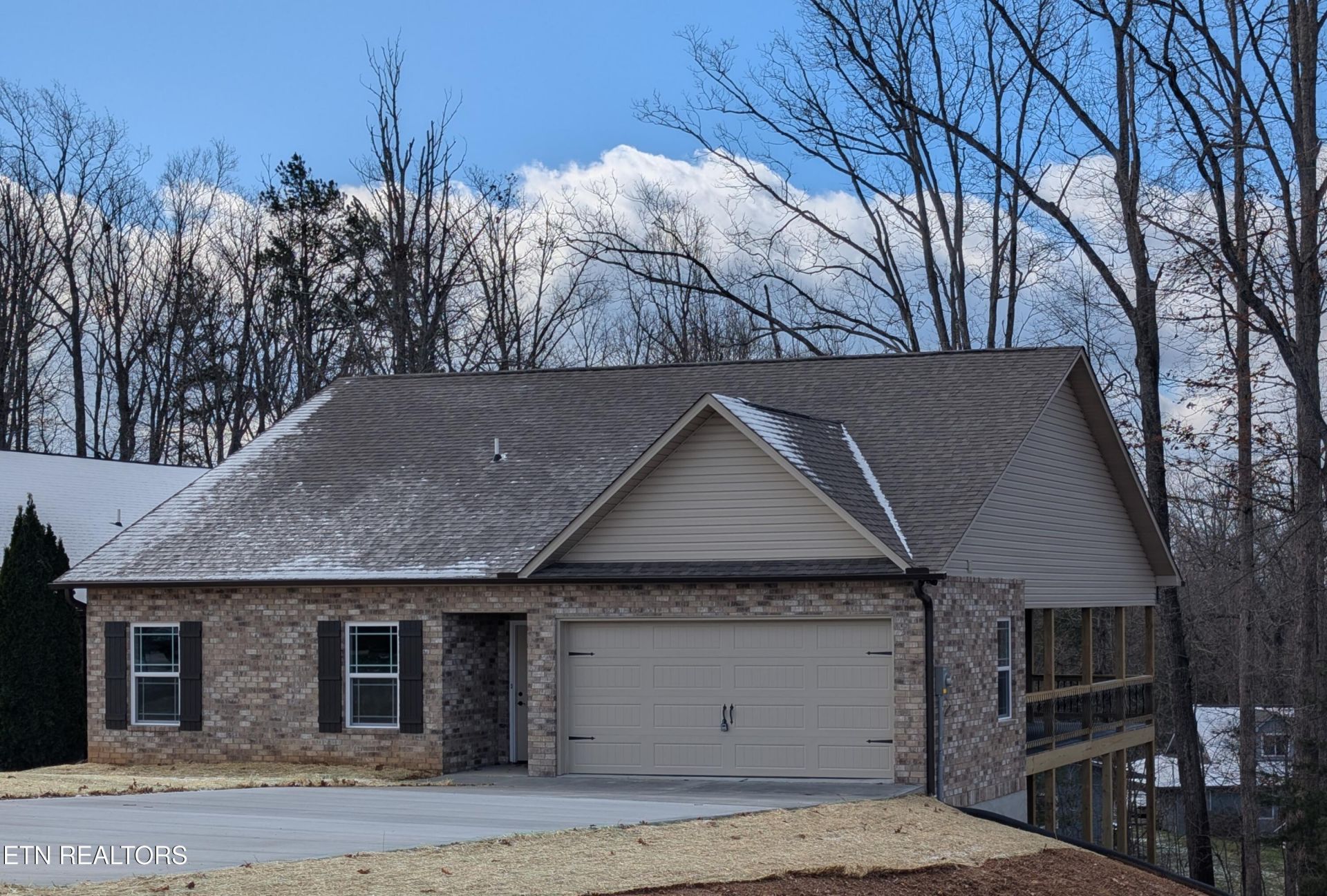 Beautiful brick rancher with 2 MASTERS with en suite bathrooms and walk-in closets. There is a beautiful covered deck off the back of the house with a vaulted ceiling and composite decking. This brand new home features a 2 car garage, 2 Bedrooms, 2.5 Baths. The home boasts amazing high vaulted ceilings in one of the master bedrooms, and throughout the living areas. With tons of natural light and high ceilings, there is a very open and spacious feel. The other master opens to the deck overlooking a wooded area for tons of privacy. This is a MUST SEE!