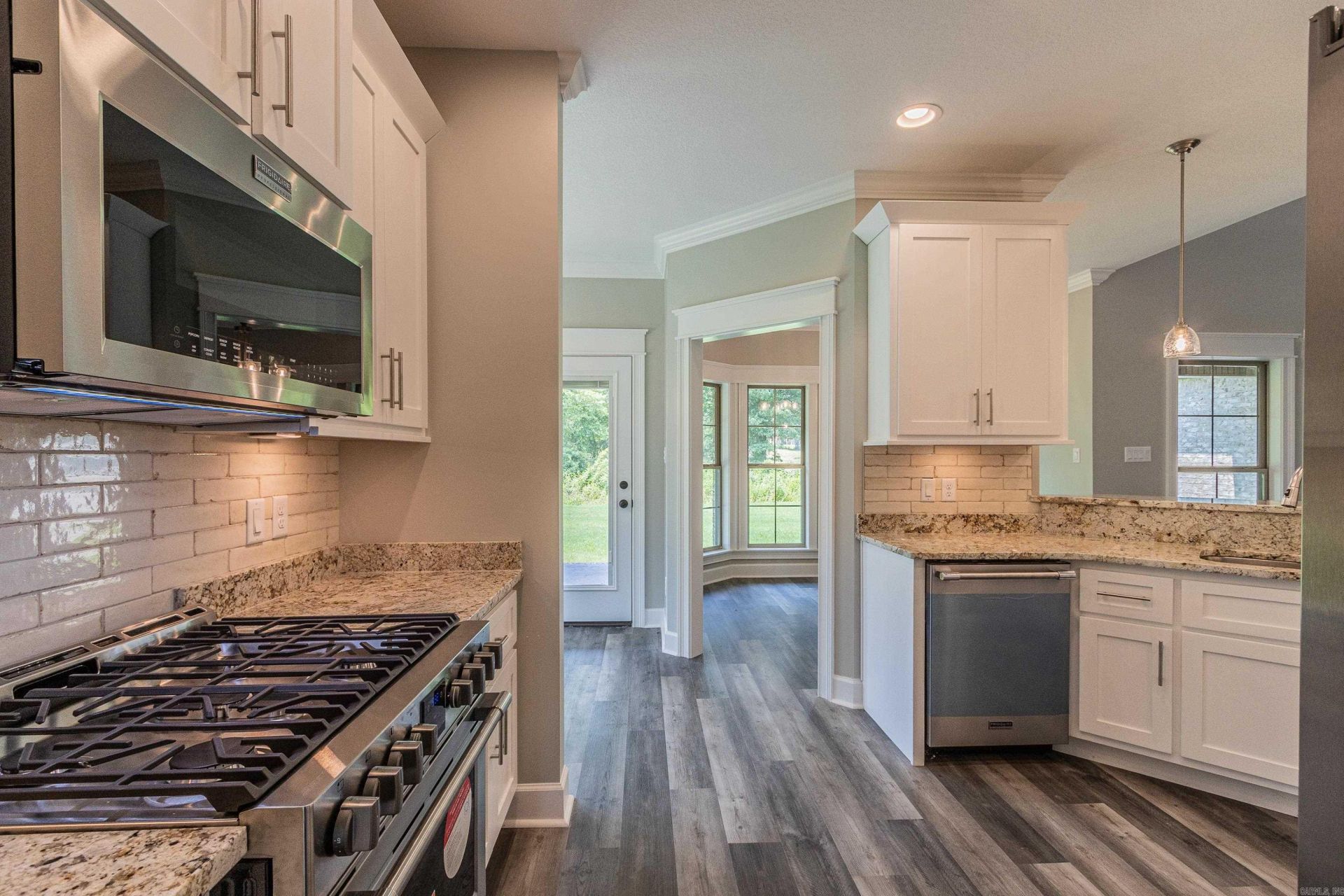 Step into luxury with this stunning custom-built home located in the desirable new Creekwood Subdivision. Offering 4 spacious bedrooms and 3 full baths, this thoughtfully designed residence features a semi-open concept floor plan anchored by a soaring stone fireplace that creates warmth and architectural elegance. An abundance of windows fills the home with natural light throughout. The gourmet kitchen is a chef???s dream, complete with high-end Frigidaire Professional appliances, striking granite countertops, ample cabinetry, a spacious pantry, and a cozy breakfast nook???perfect for everyday living and entertaining alike. Retreat to the elegant primary suite, your own private oasis featuring a spa-inspired tile walk-in shower, relaxing soaker tub, and direct access to the covered back patio. A private guest suite with its own full bath offers comfort and convenience for family or visitors. Upstairs, you???ll find an iron-rod-railed balcony overlooking the main living area, a dedicated office nook ideal for working from home, and a versatile bonus room to fit your needs. Outdoor living shines with the inviting covered patio showcasing a pine ceiling and decorative stamped concrete floor