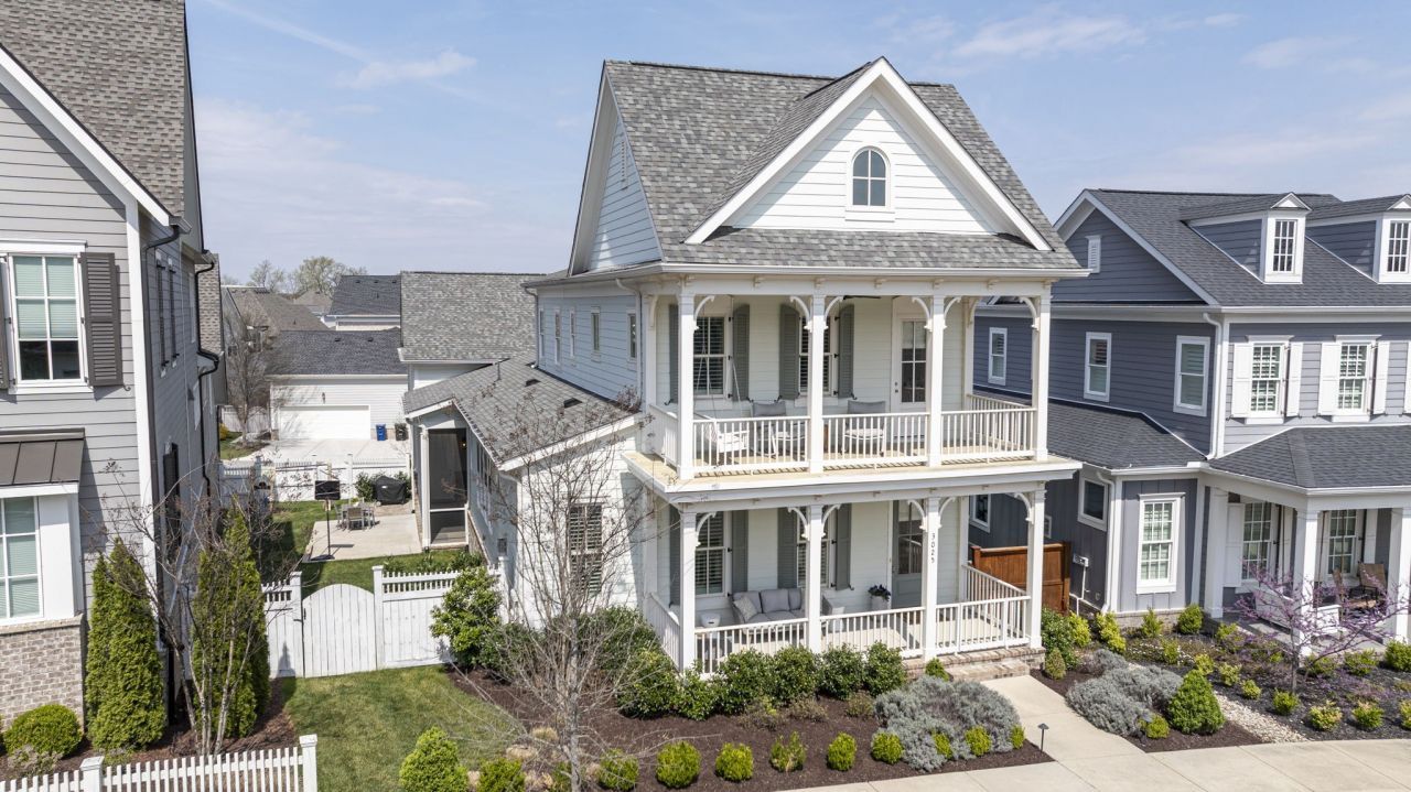Welcome Home to this Timeless Westhaven Beauty! Watch both the sunrise and the sunset from the Double Story Covered Front Porch! Perfectly positioned on a charming side street, the oversized pie-shaped lot creates a larger courtyard to play or relax. The light, airy open floor plan is designed for both entertaining and everyday comfort. You will find Sand-and-finished hardwood floors throughout the home (only 2 upstairs bedrooms have carpet), shiplap accent walls, Plantation Shutters on most windows and built-ins flanking the fireplace. The Kitchen shines with quartz countertops, stacked-to-ceiling white cabinets, large walk-in pantry, and Stainless Steel KitchenAid appliances, including a 6 burner professional cooktop and refrigerator, which will remain with home. The Main Level Primary Suite offers hardwood floors and a spa-like bath with quartz vanities and huge walk-in shower with 3 shower heads...a rain, handheld and regular wall mounted! Every Bedroom features an En Suite Bath and walk in closet. Over the True 3 Car Garage, there is a Separate Entrance to a Private Guest/In-Law Suite/Home Office/Exercise Room + Living Room with Hardwood floors, full bath and walk in closet. The Laundry Room is a dream with built in desk and cabinets. The Dining Nook has a soft pop of color from Serena & Lily wallpaper overlooking the Courtyard, Kitchen and Family Room. Live an unmatched lifestyle with the convenience of walking to the elementary school, Westhaven Town Center's shopping and dining, multiple fitness centers and pools. Thoughtfully designed and beautifully finished, this home blends timeless charm with modern comfort. Come fall in love with this beauty in one of Franklin's favorite neighborhoods!*3rd floor sq. ft. listed is the suite over the garage.