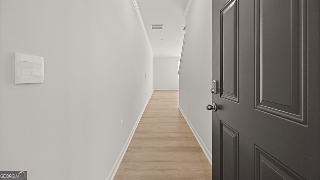 Welcome to 3028 Manor Hill Place located in the Pointe Park community. Featuring the Salisbury townhome floorplan, this homesite has 3 bedrooms, 2.5 bathrooms with 1,857 square feet and a 2-car garage. As you step off the front porch, a foyer welcomes you and leads into the open-concept main living area. A large family room is the perfect place for family and friends to gather or for a quiet night with a book or movie. The family room flows seamlessly into the well-appointed kitchen with a center island, quartz countertops, subway tile backsplash, cabinets with decorative crown molding and hardware, and stainless-steel appliances. A dining area directly off the kitchen provides space for a dining table and opens onto the back deck or patio. There is also a half bathroom tucked away on the first floor. Up the stairs you'll turn from the landing into the primary suite. A spacious bedroom is complimented by the en suite bathroom featuring a separate tub and shower, dual vanity, water closet, linen closet, and a roomy walk-in closet. 2 secondary bedrooms, the laundry room, and an additional bathroom round out the upper floor. Does 3028 Manor Hill Place sound like a dream come true? Contact us at Pointe Park to schedule a tour of this lovely home near Atlanta, GA.