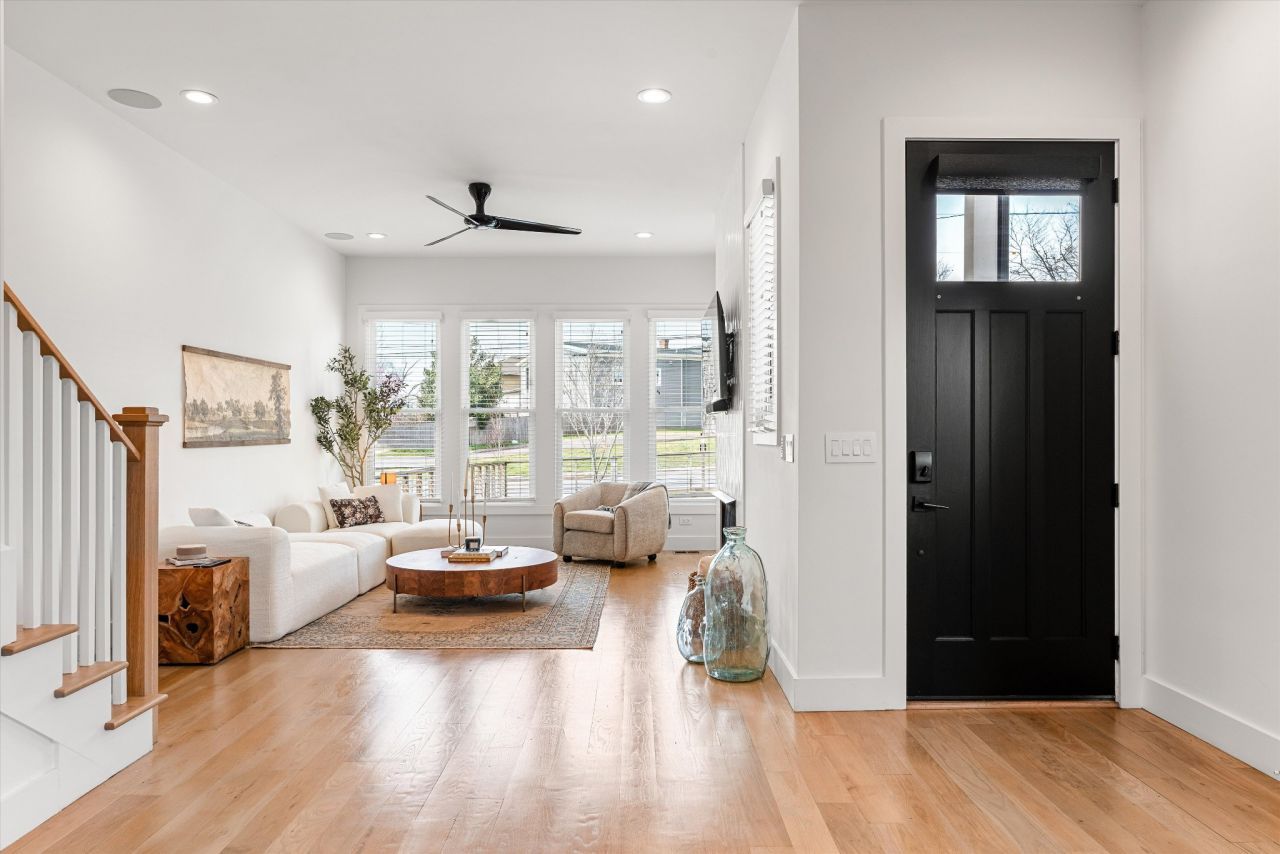 New Price! An exceptional value in East Nashville offering multiple private living spaces just 2 blocks from Five Points and next door to the Fatherland District-combining exceptional walkability with flexible living and income potential. Built in 2020, this thoughtfully designed residence features an open, light-filled layout, white oak hardwood floors throughout both levels, and a clean contemporary aesthetic with bright white interiors and modern black accents. The main living area centers around a tiled fireplace wall with built-in shelving and oversized windows that fill the space with natural light, while the chef's kitchen features quartz countertops, a large island with seating, stainless appliances including gas cooktop and double ovens, and generous cabinetry-all opening seamlessly to the dining and living spaces.A main-level ensuite bedroom with private exterior entrance includes its own refrigerator, laundry, and space designed for a potential kitchenette-ideal for guests, extended family, multi-generational living, or income-producing use including long-term, mid-term, or STR short term rental potential. Upstairs, the spacious primary suite offers a spa-inspired bath with soaking tub, glass walk-in shower, dual vanity, and custom walk-in closet. Two additional bedrooms share a bath, and a bright flex space provides the perfect home office, playroom, or secondary lounge.Outdoor spaces include a covered side porch, large rear deck, and low-maintenance fenced backyard. A detached two-car garage includes a 500 sf finished studio above with kitchen, living area, bathroom, and laundry-ideal for guests, office, or additional living flexibility. Additional highlights include a whole-home Sonos sound system, Ring security cameras, convenient alley access, and an easy walk to East Nashville dining and nightlife. Located in the priority enrollment zone for Lockeland Elementary. *Studio space is included in the main house square footage.