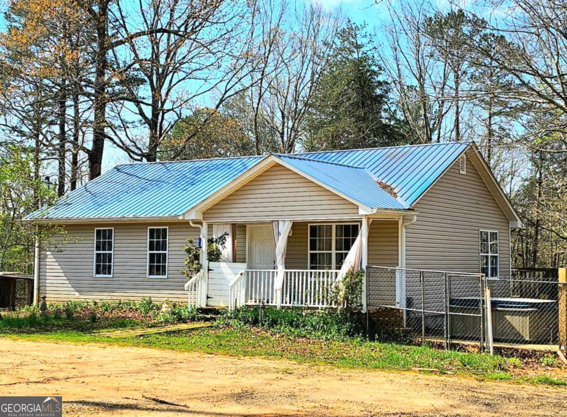 This charming ranch-style home offers 3 bedrooms and 2 bathrooms, all on one level, and is set on a private, wooded 0.76-acre lot. The living area flows seamlessly into the kitchen and dining space, creating a comfortable layout that makes the most of the home's square footage. From the kitchen, step out onto the back deck overlooking the yard-a perfect spot for enjoying the quiet natural setting. The inviting front porch adds to the home's curb appeal and provides a welcoming entry. Practical features include a pull-through driveway for easy access and additional parking. The wooded lot provides privacy while still keeping you close to nearby conveniences, blending a peaceful retreat with accessibility. Note: The deck is currently being finished with stairs and railing.