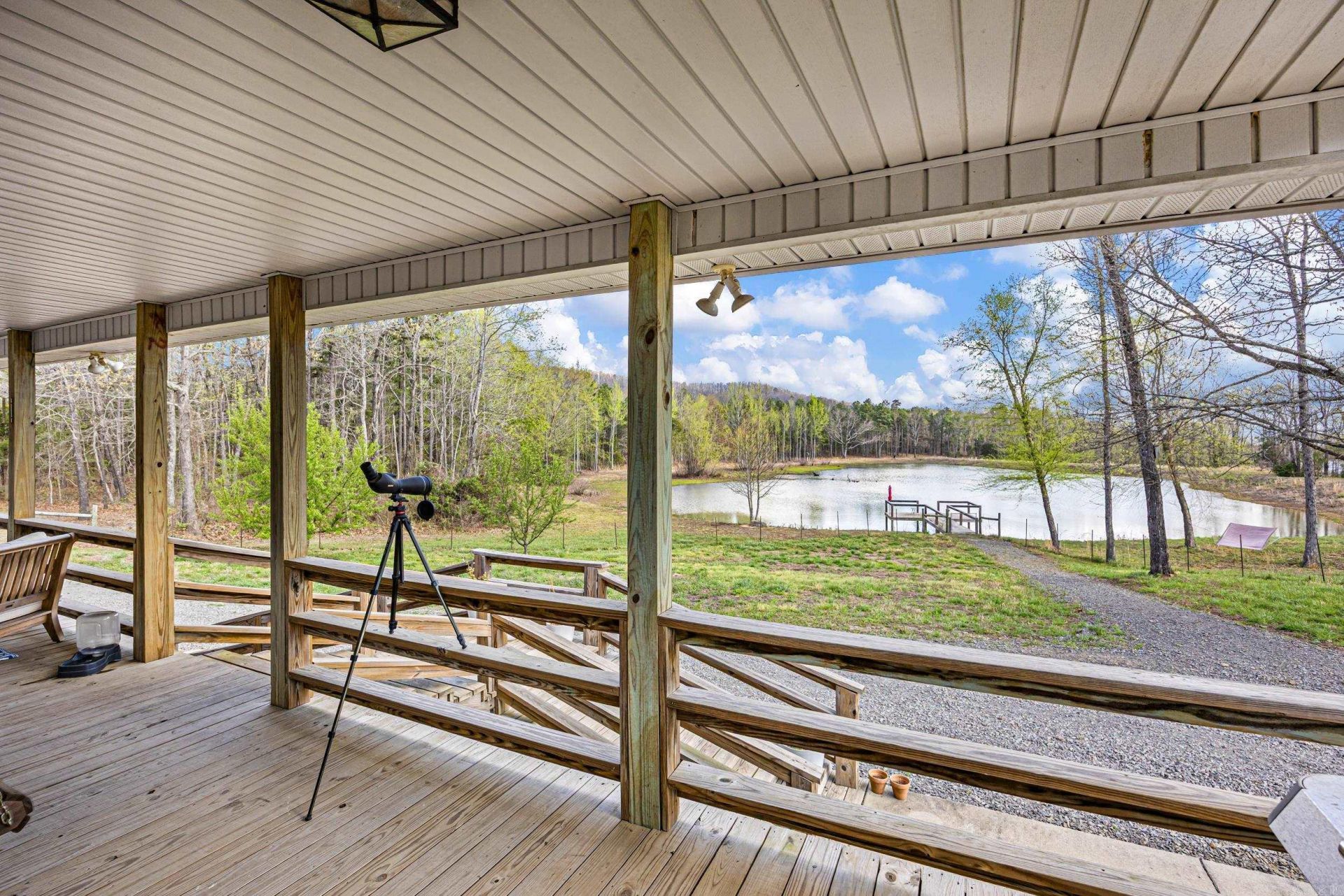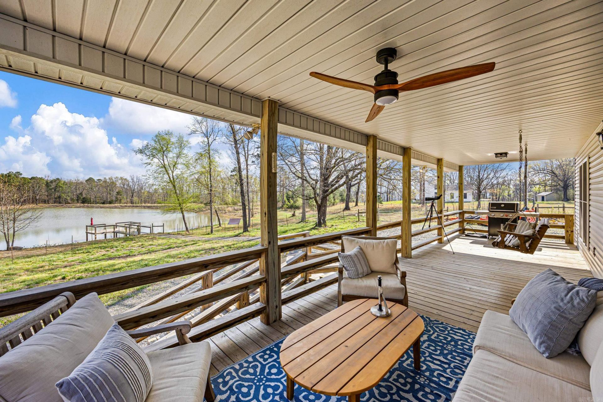 This incredible property is a must see! Built in 2017 and set on 23.46 acres, it delivers the perfect blend of comfort, functionality, and opportunity. A breathtaking 3 acre pond loaded with catfish, largemouth bass, bluegill, and crappie serves as its centerpiece, with full perimeter access, a gravel drive across the dam, wooded trails, and a large dock. Inside, the kitchen, bathrooms, and laundry room feature granite countertops, shaker cabinetry, and a stylish backsplash that ties it all together. Step outside to an expansive deck overlooking peaceful surroundings, with the entire acreage fully fenced for added privacy and usability. A two bay shop with overhead wiring, retractable extension cords, and workbenches offers versatility for work or hobbies. Additional features include an on demand water heater and an owned propane tank. With established fruit trees, garden space, wildlife, and room to spread out, this property is ideal for recreation, homesteading, or creating your own retreat. Truly a rare find!