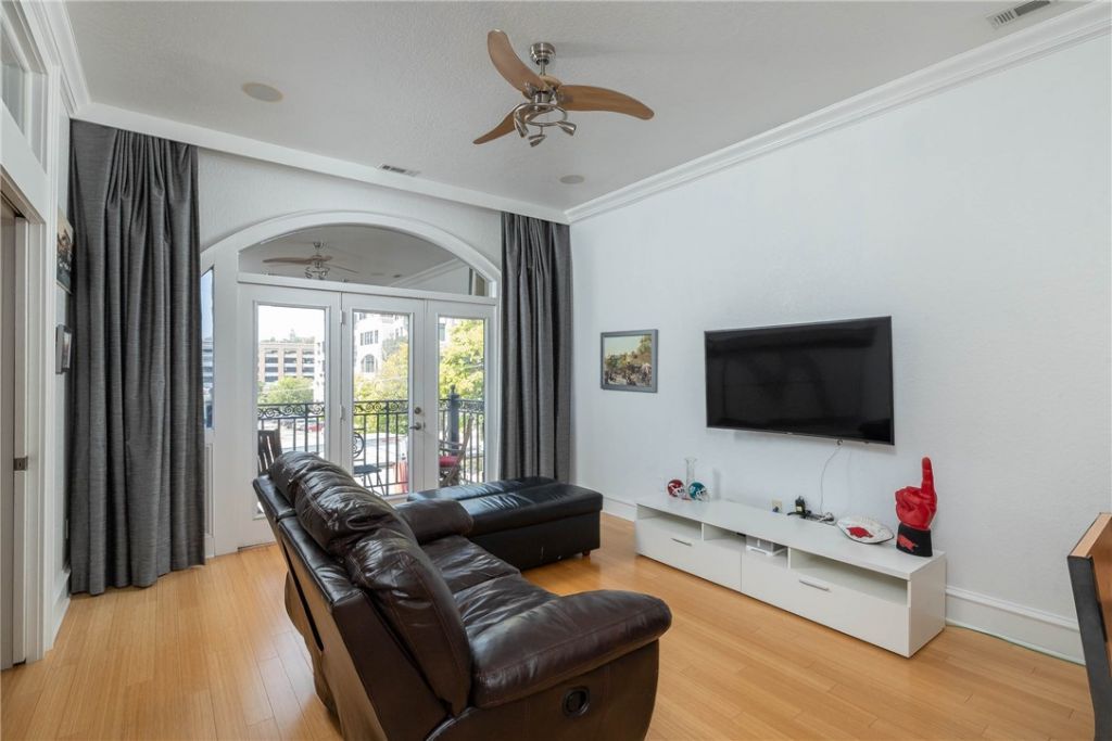Adorable condo located in Downtown Fayetteville's Art District with remarkable VIEWS. Steps away to ALL of the fun, fine dining, arts, and entertainment! 596 heated sq ft offers 1 bedroom, 1 full bathroom, eat in kitchen, living room, and laundry. Amenities include wood floors, tall ceilings, washer, dryer, refrigerator, Juliet balcony overlooking Theo's patio, and 1 reserved parking spot. Property to be sold FULLY FURNISHED! Move in and start calling the HOGS in perfect time for baseball season!