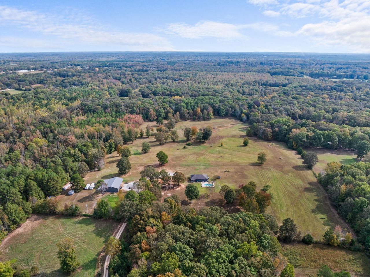 Two addresses sold as one! Live, hunt, work, and play on this private 25± acre, fully fenced farm set 1/4 mile off the road. The remodeled 1652 sq ft brick ranch (2024) features cathedral ceilings, a stunning master bath with walk-in shower, soaking tub, custom live-edge vanity, and dual walk-in closets. A 3700 sq ft insulated metal building with wood heat, separate utilities, septic, and its own address offers endless options?business, storage, horse stalls, or future barndominium. Enjoy an in-ground pool (new pump 2024), new well pump and filtration (2024), updated PEX plumbing (2024), and all new appliances. Great hunting with abundant deer and turkey. Two parcels allow living and operating a business on the same property, plus room for additional homes. Home is also set up for an easy future bedroom addition. The metal building is already set up for horse stalls, making it easy for buyers to add their own if desired. High Speed Comcast Internet is also connected.
