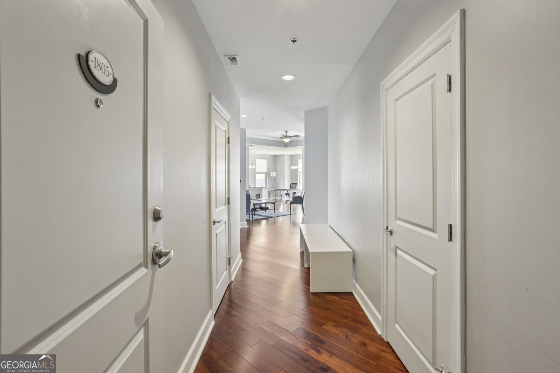 You will love the awesome unobstructed skyline views from this 18th floor end-unit with the largest 2-bedroom floorplan in the building. As a corner unit, this home has an abundance of windows and natural light. The open floor plan offers a great split-bedroom layout with plenty of space to relax and entertain. The kitchen, which seamlessly flows to the dining and living areas, features ample cabinet space, granite countertops and stainless-steel appliances. The spacious primary suite has a custom walk-in closet, tray ceiling and generously sized bath with double vanities and a soaking tub. The secondary bedroom is perfectly positioned near the other full bath in the hallway, which will be great for guests and also designed as a fantastic home office. Hardwoods throughout the home, 2 tandem garage parking spaces, a separate storage unit, washer/dryer included all add value to this special home. Paces 325 is just steps away from Buckhead's shopping and dining, with a nearby dog park to make living here so effortless and easy. This coveted building offers a beautifully updated lounge, 24-hour concierge, resort-style pool, fitness center, tennis/pickleball courts and secure gated parking.