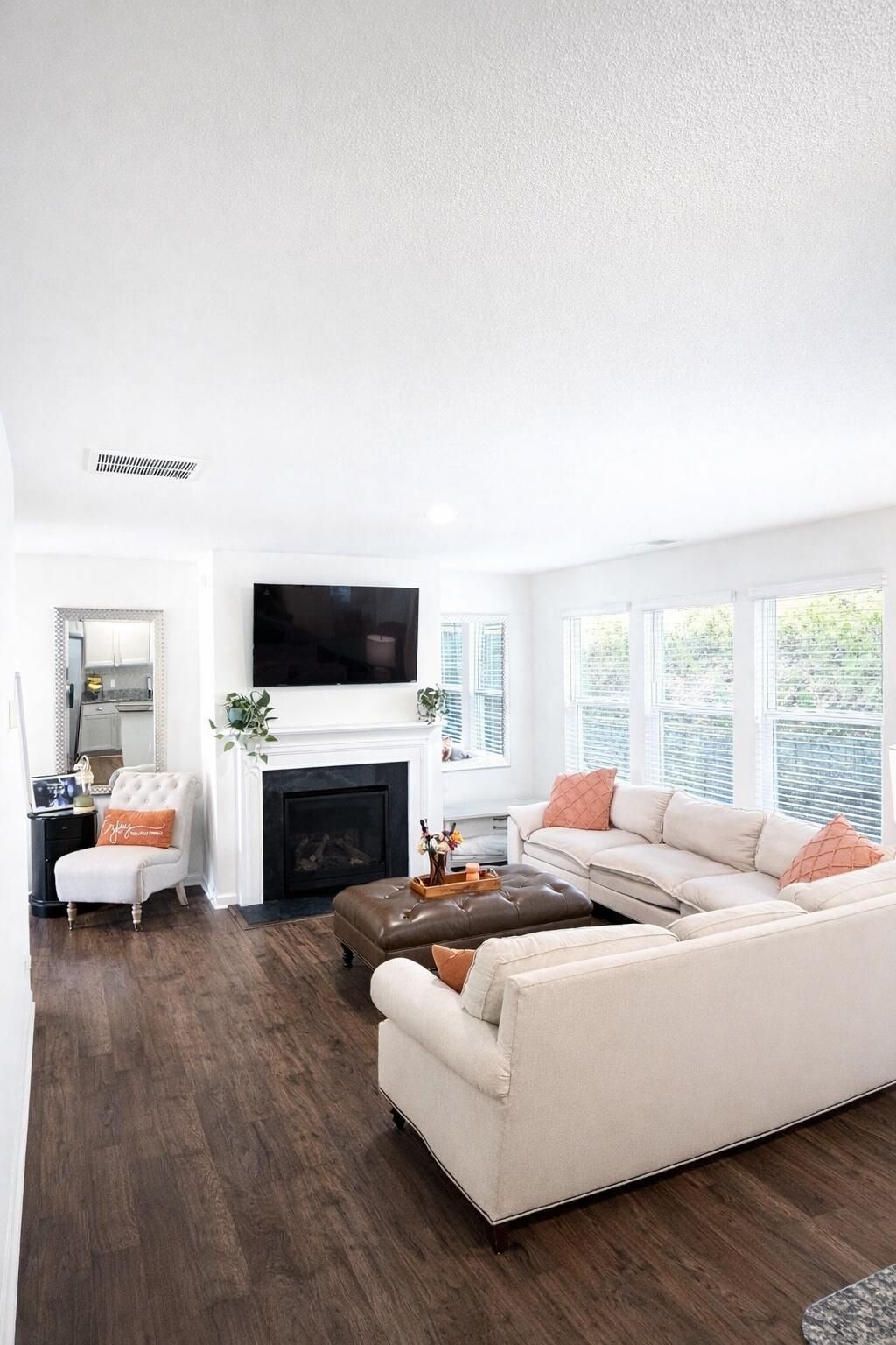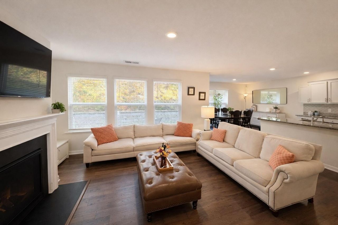 Welcome home to 3308 Harmony Court, ideally situated on a spacious cul-de-sac lot with a private backyard backing to the woods. This thoughtfully designed floor plan offers comfort and flexibility to suit any stage of life. The moment you step inside, you will be welcomed by a warm foyer that leads to a spacious open concept living area and kitchen. The kitchen features a large island with countertop seating, a pantry, and a breakfast nook, stainless steel appliances, soft close cabinets and backsplash, making it ideal for meal preparation and dining. The living and kitchen areas offer a picturesque view of an outdoor patio, perfect for relaxing and entertaining guests. Upstairs, you will find four generously sized bedrooms and two full bathrooms. The large primary bedroom boasts a walk-in closet and an en suite bathroom for added privacy and convenience. Moreover, there is a laundry room located upstairs for easy access. Move - In ready with window blinds and appliances!