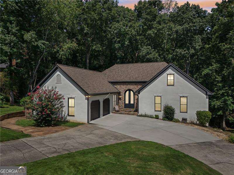 Just minutes from the beauty of Lake Lanier, this thoughtfully upgraded home combines everyday comfort with upscale touches that make it truly special. Set on nearly an acre, it offers plenty of space inside and out for gathering, relaxing, and making memories. Grand double doors welcome you into a soaring two-story foyer that opens to the living room, where vaulted ceilings, double skylights, and oversized windows fill the space with natural light. Whether you're hosting friends at the wet bar or curling up by the fireplace after a long day, this open-concept design is made for both entertaining and unwinding. The spacious kitchen sits at the heart of the home with newly refinished cabinets, stainless steel appliances, a walk-in pantry. Enjoy casual meals in the sunny breakfast area or for special occasions, the separate dining room is the perfect setting. The main-level primary suite has a beautiful tray ceiling, roomy walk-in closet, and an updated spa-like bath featuring a glass shower, separate tub, and updated fixtures. Two additional bedrooms share another beautifully updated full bath, ideal for family or guests. Upstairs, a flexible bedroom with its own updated bath works perfectly as a home office, playroom, or guest suite. The finished basement extends the living space with a secondary family room, media room for movie nights, and an additional bedroom and bath-perfect for hosting overnight guests or creating a private in-law suite. Step outside to the large back deck with both covered and open areas overlooking a private, tree-lined yard-perfect for summer barbecues or crisp fall mornings. More pics coming soon.....Can't wait to show you this gorgeous property!!