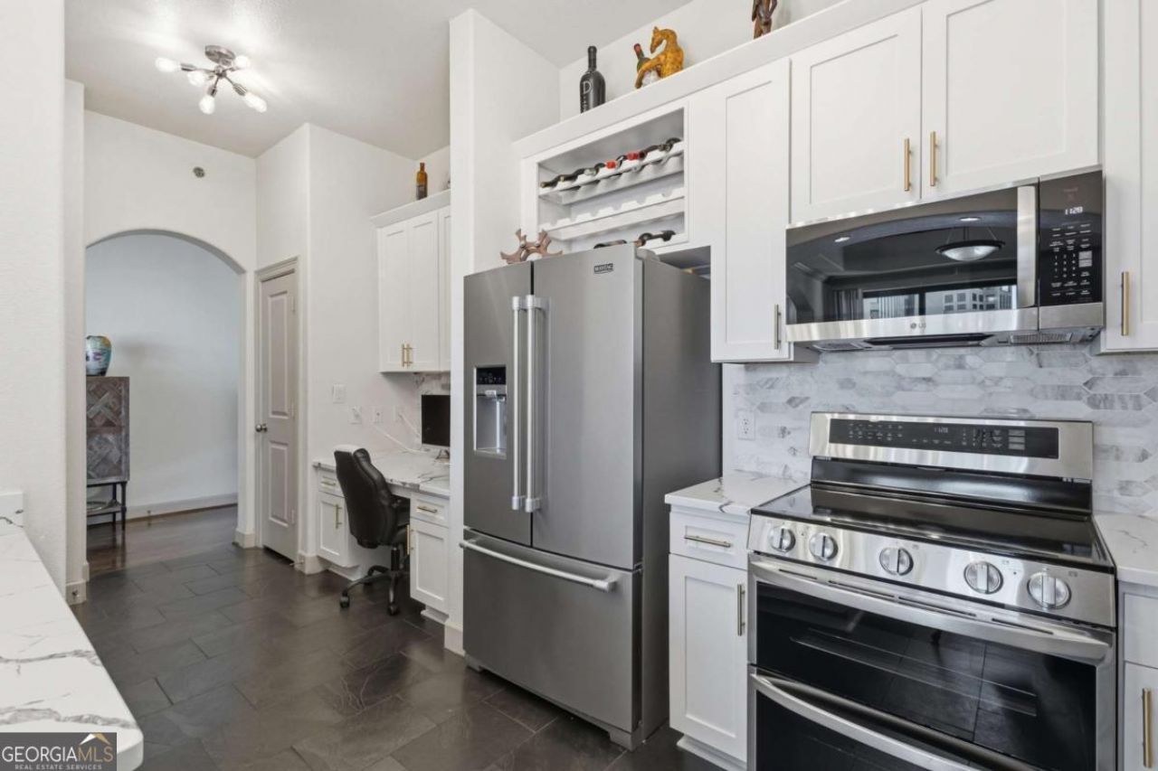 Experience a rare offering at The Paramount in Buckhead-an exceptional 21st-floor residence that redefines elevated city living. This distinguished home features an extraordinary 350-square-foot deeded private garage, a truly uncommon amenity in high-rise condominium living. Designed with both sophistication and practicality in mind, this two-bedroom, two-bath residence showcases a highly desirable roommate-style floor plan. A formal dining room and private study add versatility, creating an ideal balance of elegance and everyday functionality. Expansive living areas are framed by breathtaking skyline views, while rich hardwood flooring adds warmth and a modern, refined aesthetic throughout the main spaces. At the heart of the home, the chef's kitchen has been thoughtfully reimagined with premium stainless steel appliances, sleek contemporary finishes, and custom cabinetry-delivering both striking design and superior performance. Each bedroom serves as a private retreat, complete with plush carpeting and generous walk-in closets. The spa-inspired bathrooms feature elevated finishes, including a bidet in the primary suite for an added touch of comfort and luxury. A standout feature of this residence is the combination of a premium parking space and an oversized private garage within a secured subterranean level-offering unmatched convenience, privacy, and security rarely found in Buckhead high-rise living. Residents of The Paramount enjoy an exceptional array of resort-style amenities, including 24-hour concierge service, tennis and pickleball courts, a heated saltwater pool with private cabanas and televisions, a state-of-the-art fitness center, wine tasting room, private screening theater, executive business center, and beautifully landscaped gardens with fire features and outdoor entertaining spaces. Perfectly positioned in the heart of Buckhead, this home offers effortless access to premier shopping, dining, and transit, along with a private rear access point to Lenox Road and GA-400-providing a distinct advantage for navigating city traffic. This is more than a residence-it is a rare opportunity to own a truly exceptional piece of Atlanta luxury living.