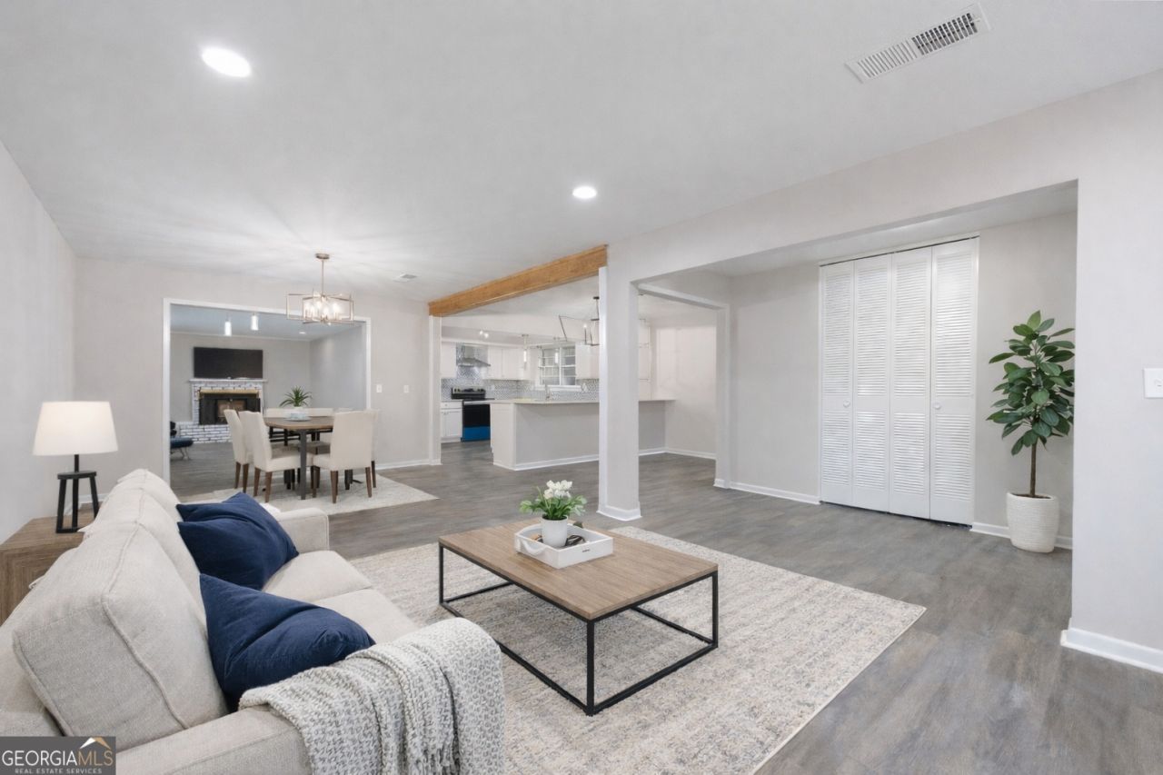 Welcome to this beautifully renovated home offering the perfect blend of modern updates and comfortable living. From the moment you step inside, you'll notice the open-concept layout, creating a seamless flow between the living, dining, and kitchen spaces-ideal for both everyday living and entertaining. The fully updated kitchen features granite countertops, stainless steel appliances, custom cabinetry, and a stylish backsplash, all designed with both function and elegance in mind. The spacious living area is highlighted by a charming fireplace and abundant natural light, creating a warm and inviting atmosphere. Both bathrooms have been tastefully renovated with modern finishes, including a spa-inspired tiled shower and updated fixtures that elevate the home's overall appeal. Durable LVP flooring runs throughout, complemented by updated lighting and thoughtful design touches. Step outside to enjoy a large, fully fenced backyard-perfect for pets, gatherings, or relaxing evenings at home. The covered carport provides convenient parking and additional storage. Seller is offering $5,000 in buyer concessions-use it your way! Apply it toward closing costs, a rate buy-down, or updates that make the home truly yours. This home is move-in ready and thoughtfully upgraded. Schedule your private showing today!
