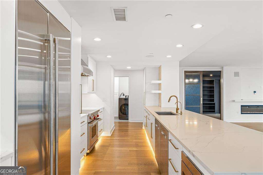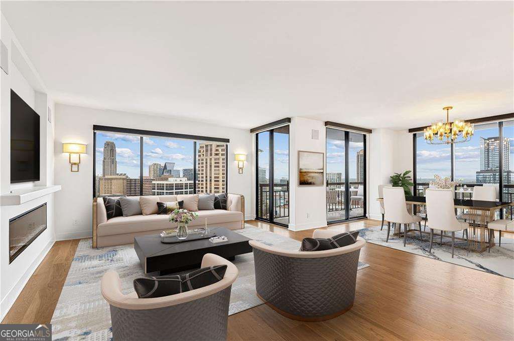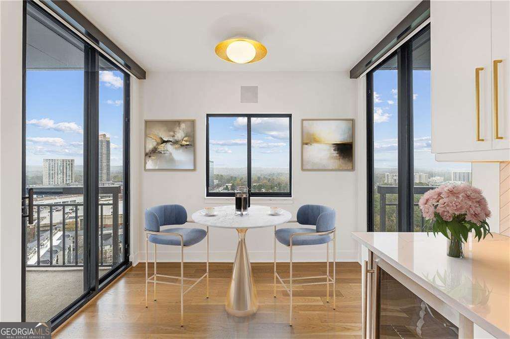 Perched high above the city on the 32nd floor, this Buckhead residence offers a perspective that's hard to put into words and even harder to walk away from. Floor to ceiling windows frame sweeping, unobstructed views stretching from Sandy Springs to Downtown Atlanta, creating a constantly changing backdrop of skyline, sunsets, and city lights. Inside the home unfolds with an effortless, modern flow, designed as much for everyday living as it is for entertaining. The kitchen anchors the space with a sleek, elevated feel, featuring a Wolf induction range, waterfall quartz island, and integrated appliances that blend seamlessly into the design. Whether it's a quiet morning coffee or a full evening hosting friends, every detail supports the moment. Thoughtful upgrades carry throughout, from custom LED lighting and uplighting to a built in 12 zone speaker system that sets the tone in every room, including the unexpected luxury of music in the steam shower. Each bedroom is positioned for privacy and comfort, complete with its own balcony access, while a flexible third room currently styled as an office offers the option to convert into an additional bedroom as your needs evolve. The primary suite is a true retreat, with a spa-inspired bathroom featuring marble finishes, a frameless walk-in steam shower with dual shower heads and a floating bench, and custom touches that elevate daily routines into something more intentional. Custom closets, floating vanities, under cabinet lighting, and curated finishes throughout reflect a level of design and care that sets this residence apart. Located in the heart of Buckhead, you're just moments from the city's best dining, shopping, and nightlife, yet high above it all, where everything feels a little quieter, a little more private, and entirely your own.