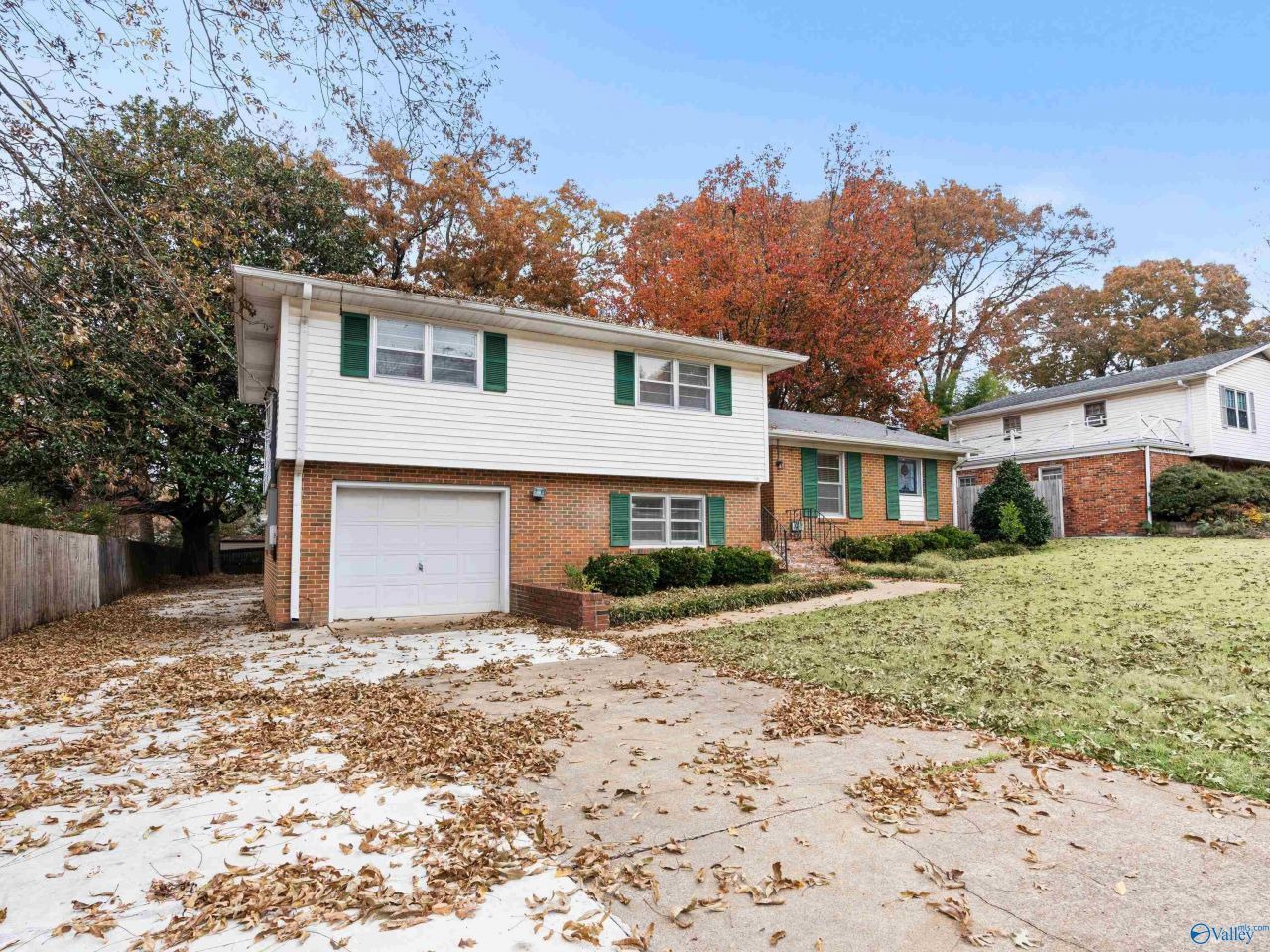 Beautiful tri-level home offering 3BR 4BA with an open flowing floorplan. Beautiful hardwoods gleam throughout the first level. Stunning stained glass windows fill the home with warmth and charm. All Bedrooms are on the 2nd level with the Master having a private bath. The lower level includes a spacious family room or optional additional BR with its own private BA. Plus a detached 1BR apartment provides excellent flexibility including the potential for rental income. Detached two car garage. Large, flat lot with abundant parking and extended drive. Prime location just minutes to I-565, UAH, and downtown Huntsville. Truly a must see!