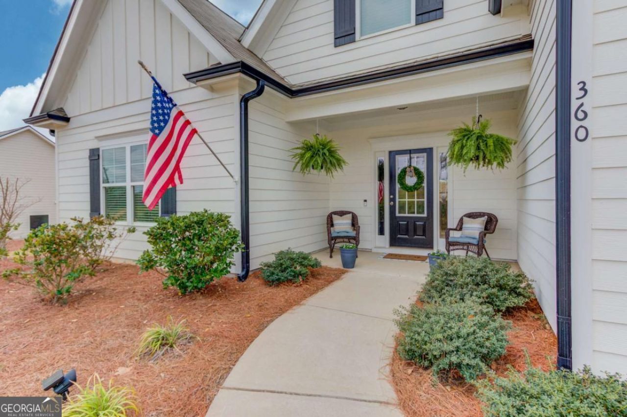 Welcome to 360 Mulberry Rd, the place you'll want to call home. From the minute you pull into the driveway, this home feels welcoming. Sitting on over an acre with no HOA, you get the space and freedom that's getting harder to find. Step inside and you're welcomed by a bright, open layout that leads into the main living space. The living room is incredibly spacious, with vaulted ceilings, tons of natural light, and a gas fireplace that makes the whole space feel warm and inviting. The kitchen is truly the heart of this home, with tons of counter space, a huge island with bar seating, and a layout that keeps everything connected. It flows right into the living room and dining area, creating one open space where everyone naturally gathers, whether you're cooking, hosting, or just spending time together. With views of the backyard and room to spread out, it is one of those spaces that just feels easy to live in. The master suite is tucked away and feels like its own retreat, with a tray ceiling, plenty of space, and a custom accent wall with an electric fireplace that adds such a cozy touch. It also features private access to the back porch, making it easy to step outside and enjoy your morning coffee or unwind in the evening. The bathroom includes a double vanity, soaking tub, and separate shower. Two secondary bedrooms are located on the main level and share a full bathroom, while upstairs you will find another bedroom with its own private full bath, perfect for guests, a teen suite, or a quiet, separate space. And then there is the backyard, and it really delivers. The yard is fully fenced, but the property extends beyond the fence line, giving you even more space than you see at first glance. The covered back porch is one of those spots you will find yourself using all the time, perfect for hosting, watching the Dawgs play, or just relaxing at the end of the day. It flows right into the extended deck area, fire pit space, and pergola with a hot tub, creating a setup that is truly made to be enjoyed. There is also a storage shed for all the extras, plus a dedicated parking pad with plenty of room for your toys, one side extended to approximately 31 feet for a camper and the other around 24 feet for a boat. It is a backyard that gives you both the space and the flexibility to actually use it the way you want. Conveniently located near shopping and dining, while still offering the privacy and feel of a more rural setting, this home truly gives you the best of both worlds.
