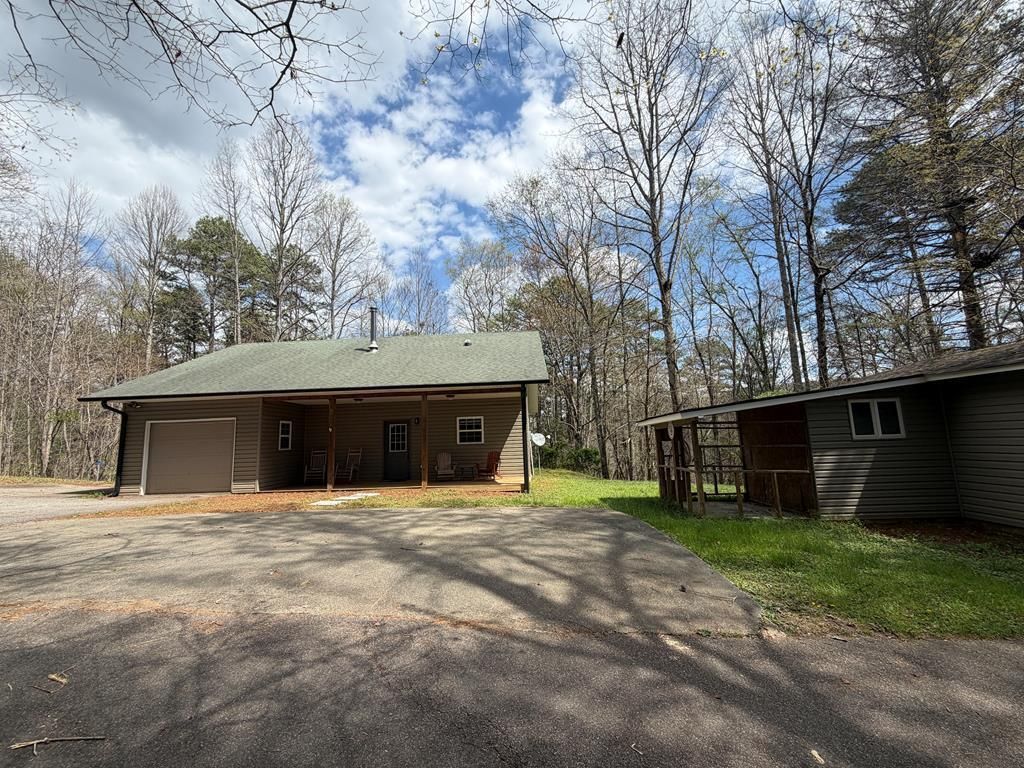 The Perfect Place to Start. LOW Maintenance 2006 Construction with a LARGE detached Vinyl-Sided Matching Workshop (caged in area for small livestock attached to Workshop on this UNRESTRICTED property). Double Flue Pipe for venting & Tiled wall prepped for free-standing Fireplace in the Great Rm. ALL Large Tile Floors in Great Rm w/ Cathedral Ceiling & built-in Archway Display Shelf . 10' Ceilings in the Bdrms adding to the feeling of Spaciousness. Luxury Wood-like Vinyl in one Bedroom & Laminate Wood Like Flrs in the second Bdrm. Jack & Jill Full Bath between the Bdrms w/Tile Flr & Fiberglass Tub/Shower Unit. Large Walk-in Closet between Bdrms too. Raised Panel Oak Kitchen Cabinets w/Raised Corner Cabinets & Beautiful Crown Moldings....built in Pantry Cabinets, 'Eat-At' Extended Counter bar with Overhang for Bar Stools. Granite Composite kitchen sink & a Tube SKYLIGHT adding brightness to the Kitchen. TALL (5') Vinyl Clad Double Paned Windows w/blinds & screens in Bdrms. 1-Car Garage (with opener) is Heated/Cooled & features an open 2nd Full Bathroom w/a working Commode, Full Shower & Laundry Sink. Easy Option to make Garage Living Space & close in the 2nd bath. New Heat Pump in 2025. Circular Drive w/Plenty of Parking. Canned Lights thru out (some with dimmer switches). ALL PAVED ACCESS & City Water. This is the perfect starter home or make it more rustic for an easy vacation rental. Its difficult to find Newer 2016 Construction w/Low Maintenance Specs in this price range w/an ALL Paved Access, Unrestricted with City Water & ETC Fiber Optic Internet.