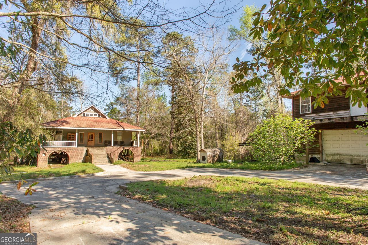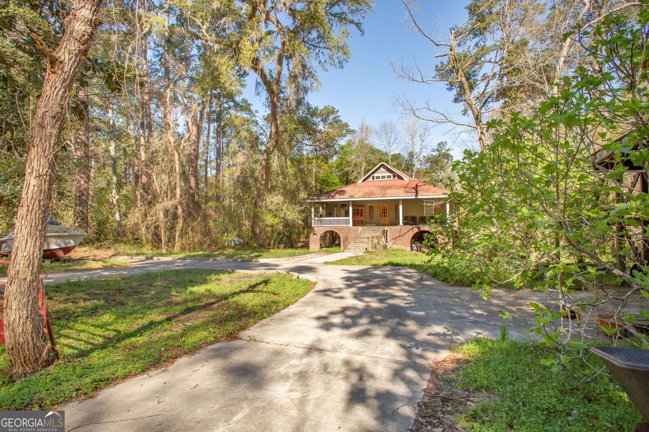 Situated on 2.64 acres along a beautiful stretch of the Satilla River, this home offers stunning views and a peaceful setting that's hard to replicate. With a wrap-around porch, multiple back decks, and room to roam, this is the perfect place to enjoy the outdoors and take in everything riverfront living has to offer. The home features 3 bedrooms and 2 bathrooms, with a 1.5 story layout that includes a private upstairs master suite. Inside, you'll find a full kitchen, two separate living areas, dining room, and a laundry room. Built on a concrete foundation with concrete pillars and spray foam insulation underneath, in the walls, and under the roof, the home has a solid structural base to withstand the elements. A standout feature is the detached 2 car garage with a room above, ideal for future guest quarters, rental potential, or a private studio/workspace. This home is full of potential and ready for your personal touch. With a little vision and some TLC, it could truly shine as a full time residence, weekend getaway, or investment opportunity. If you've been waiting for a chance to own riverfront property and aren't afraid to put in a little work, this could be the one. Being sold as-is.