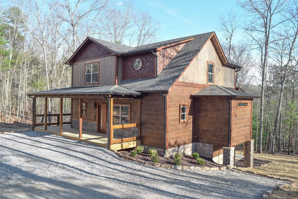 Drive through the picturesque north Georgia countryside and come home to your own personal NEW CONSTRUCTION palace in Ridge Brook Country Estates. Only MINUTES away from Blue Ridge and Blairsville, GA. Easily arrive and park in the generously wide, level parking area. Through the front door, enter into an inviting space that beholds all of the best features of a newly constructed home. MAIN LEVEL LIVING made possible with the primary bedroom, kitchen, living and laundry rooms all on the first floor! Prepare the best dishes in the finished kitchen complete with stainless steel appliances and custom built cabinetry for all of your kitchenware storage needs. Socialize and dine around the thoughtfully designed kitchen island or around a table in the adjacent dining nook. Recline and relax in the open living room graced with natural sunlight and convenient access to the covered back deck for outdoor enjoyment. Enjoy the warmth of a fire in the gas-stubbed floor to ceiling fireplace. Upstairs offers a pleasant bedroom space and full bathroom for guests. Additionally an open loft offers space for a home office or leisurely activities. Sliding barn doors allow for enhanced loft privacy when desired. Wander down to the lower level to find the ultimate space for entertaining. Set the mood with the customizable electric fireplace and tune in to your favorite shows and teams in the dedicated TV box. Always have refreshments on hand in the dual counter wet bar complete with mini-fridge and floating shelves. Further down the hall find another full bathroom and bedroom with walkout access to the lower level deck. At the end of the day retire to the comfort of the main level primary suite. Unwind in the luxury of the custom finished bathroom offering a freestanding bathtub for bathing or under the overhead rain shower head. Continue to feel at ease as you exit out onto the HEATED TILE FLOOR. The possibilities are endless and waiting for you here at Ridge Brook Country Estates.