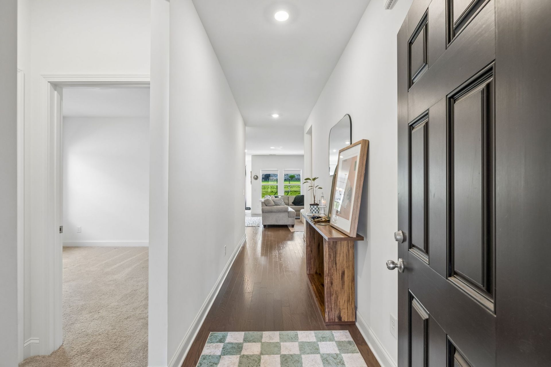 This one-level, open-concept home features tons of natural light and hardwood floors throughout the living areas. The heart of the home features a premium kitchen equipped with quartz countertops, extra-large hardwood cabinets, a gas range, and a pantry with dedicated outlets for a coffee station.The property includes several upgrades, such as a primary closet that connects directly to a walk-through laundry room and a garage equipped with a 220V outlet. Outdoor living is enhanced by a covered patio with a roll-down screen, and for added value, an 85 television stays with the home.