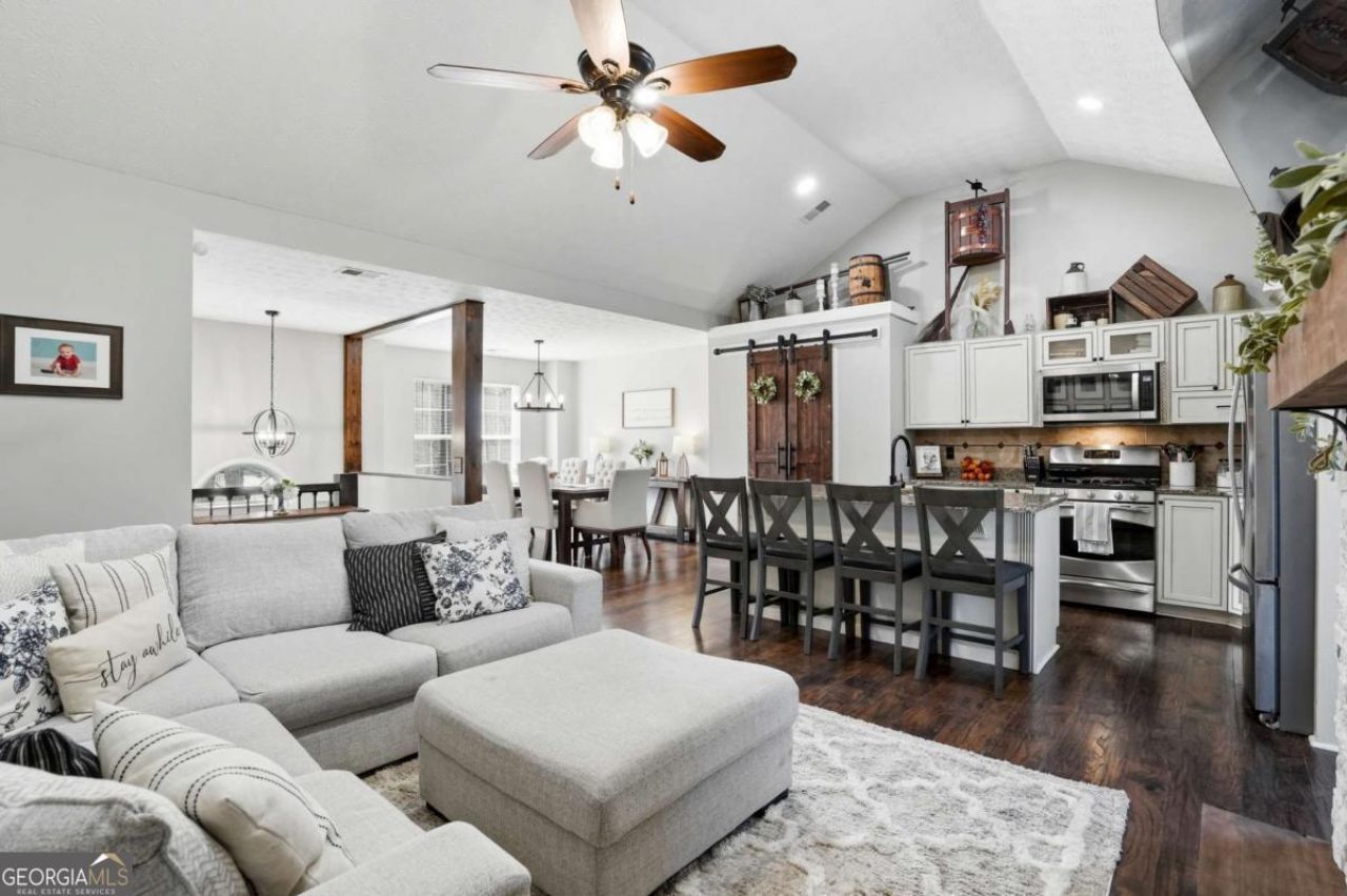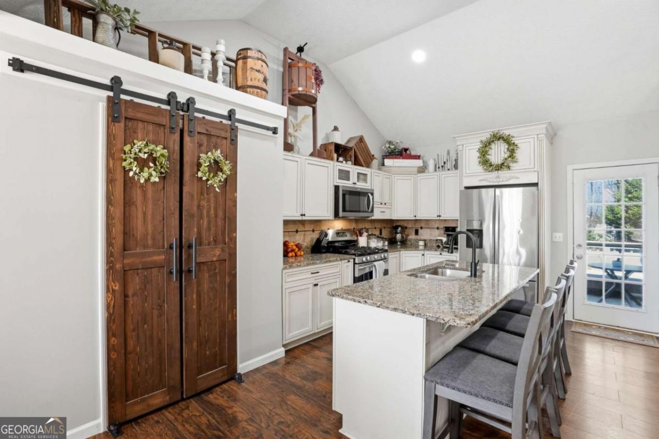 Assumable FHA Loan Balance at 3.125%. This is the one you have been waiting for! Move-in ready gem packed with upgrades and trending design throughout! Beautifully upgraded kitchen is a showstopper, featuring custom high-end cabinetry, elegant stone countertops, stainless steel appliances, and a tile backsplash. A custom-designed pantry with stunning barn doors adds both character and functionality, giving you plenty of storage while creating a striking focal point. The fireside family room offers the perfect place to relax or entertain, highlighted by a dramatic split-faced stone fireplace surround, vaulted ceilings, and a stylish whitewood mantle that brings warmth and modern charm to the space. Just off the living area, the separate dining space is filled with abundant natural light, creating an inviting setting for everyday meals or special gatherings. Retreat to the spacious primary suite, complete with a beautifully updated ensuite bath featuring a soaking tub, separate shower, large vanity, and walk-in closet. Stylish sliding barn doors add a trendy touch to both the primary bath and walk-in closet. Every bathroom in the home has been remodeled with designer tile and upgraded plumbing fixtures, delivering a fresh, modern feel throughout. Wood vinyl flooring spans the main living areas and hallway. The finished lower level expands your living space with an additional bedroom, full bath, and extra storage area, making it perfect for guests, a home office, or a private retreat. Car enthusiasts and storage lovers alike will appreciate the extra-large garage, offering ample room for extended vehicles plus all your storage needs. Step outside to enjoy the brand-new deck overlooking a large, grassy backyard-ideal for outdoor entertaining, play, or simply relaxing in your own elevated space. Beautiful upgrades, functional living spaces, and modern design touches throughout make this home truly move-in ready. Don't miss the opportunity to make it yours!