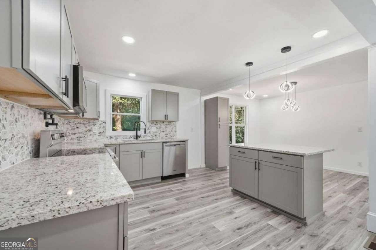 Experience refined living in this beautifully renovated four-bedroom, three-bath on a FINISHED BASEMENT showcasing a sophisticated modern farmhouse design. Thoughtfully crafted interiors feature open living spaces and curated finishes that create an effortless blend of comfort and style. Enjoy a peaceful outdoor terrace framed by mature trees and the convenience of two separate driveways providing ample parking. Ideally situated near I-285 and just minutes from local shopping, dining, and parks, this home offers both elegance and accessibility in a truly desirable setting.