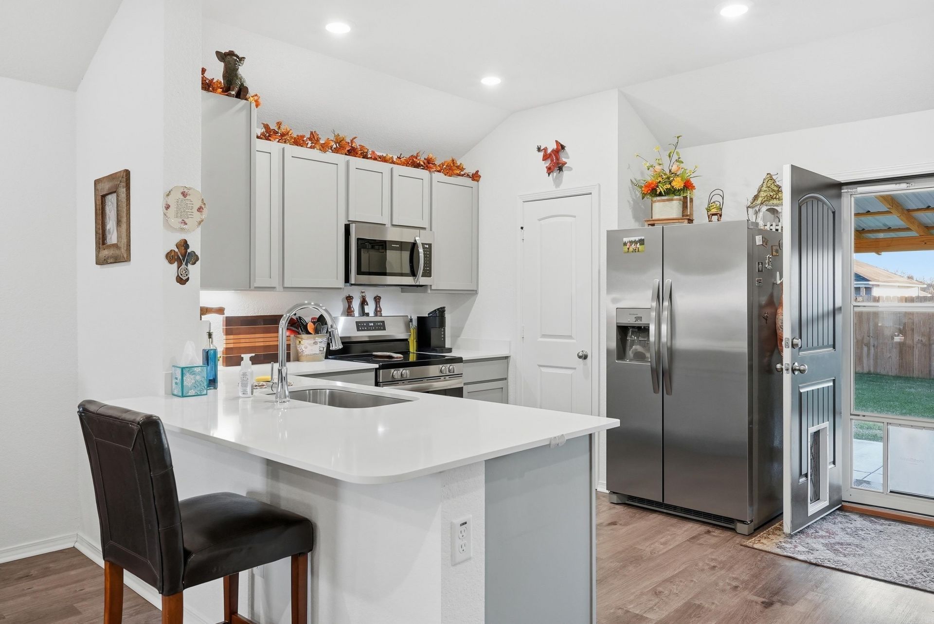 Step into this beautifully designed 3-bedroom, 2-bath home featuring a spacious, open-concept layout perfect for everyday living and entertaining. The kitchen and bathrooms are thoughtfully finished with quartz countertops and soft-close cabinetry, offering both style and functionality. Enjoy generously sized rooms throughout, providing plenty of space to relax and unwind. The open living area flows seamlessly to a covered back patioâ??ideal for hosting or enjoying quiet evenings outdoors. The fenced backyard adds privacy, while gutters are already in place for added convenience.