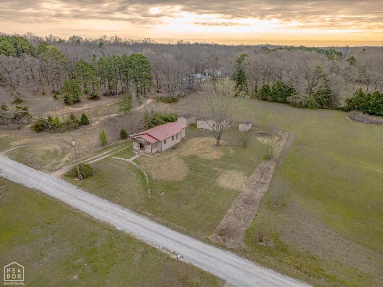 Welcome to Market 40 Lige Lane in Cave City, Arkansas. Situated on a .50 acre level lot off Antioch Road is a 1988 built Rural Bungalow accompanied by a shop and two outbuildings. The exterior is wrapped in wood & stone, topped w/ a 2024 red metal roof, and accented by a 144 sf covered front porch w/ window awnings and lattice, steps w/ stone surround, and covered back porch. The interior features 949 sf of well laid out living space with an open concept living, kitchen, and dining area. The kitchen offers a gas stove, bar seating, and ample cabinet & countertop space. There are 2 generous bedrooms w/ closets, flex space for an office or craft room, and a full bathroom w/ shower/tub combo, vanity, and washer/dryer hookups. The grounds offer a functional outdoor setup featuring multiple outbuildings suited for storage, workspace, or hobby use. A 24x24 utility building w/ electric provides a versatile shop space, while two additional outbuildings (10x14 and 8x12) add storage for equipment, tools, or seasonal items. Conveniently located approx. 10 miles to Batesville, 40 miles to Hardy, and 60 miles to Jonesboro. Call today to schedule your tour and make this house your home.