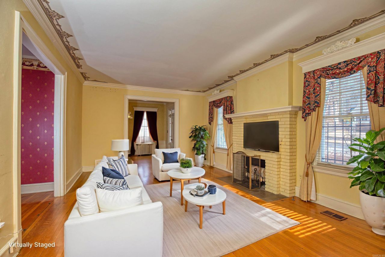 Set on a rare double lot in the Midland Hills Subdivision, this timeless 1930 built residence offers over 3400SF of refined living space. The thoughtfully designed layout includes 4 spacious bedrooms 3.5 bathrooms, formal living and dining rooms, a breakfast room, two versatile flex spaces and a private office. Original tongue and groove wood floors run throughout the 2nd and 3rd floors, adding warmth and character to every step. An elevator provides convenient access to three levels of this 4 level home. The attic is finished and provides easy access to storage and utility equipment. The property also features a detached garage, a separate storage building, and a large parking area, which is a rare find in a historic setting. Rich in charm and full of potential, this one-of-a-kind home offers exceptional space, elegance, and flexibility. Don't miss viewing this beautiful home. Schedule your showing today!