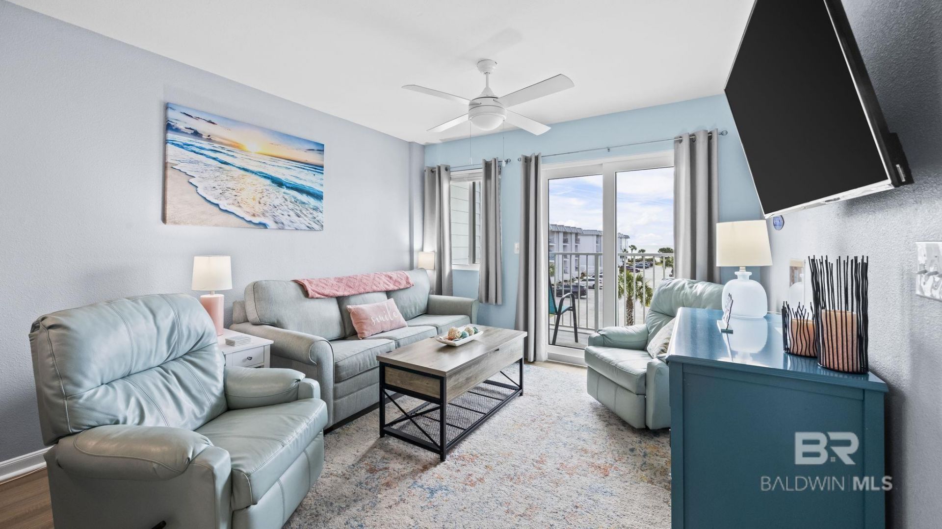 Feel the Gulf breeze from your private balcony, where water views and Fort Morgan's quiet, dune-lined shoreline set the scene for a more relaxed coastal escape. Tucked away at Gulf Shores Plantation, this 3rd-floor, 2-bedroom, 2-bath condo offers the kind of setting visitors seek out?and return to. With rentals already booked into 2027, it's a ready-made investment or an easy second home. Located in Building 4?full renovation completed in 2022?this unit pairs peace of mind with updated coastal style. Luxury vinyl plank flooring, smooth ceilings, fresh paint, stainless steel appliances and a clean, cohesive design throughout. Updated furnishings?including a sleeper sofa in the living area and a second bedroom with double bunks and a trundle?make sleeping accommodations comfortable and functional for guests. Beyond the unit, the amenities elevate the experience: multiple outdoor and indoor pools, hot tub, sauna, fitness center, tennis and pickleball courts, BBQ areas, and direct dune walkovers to the beach. Gated entry and on-site security add convenience, while nearby favorites like Sassy Bass and Kiva Dunes Golf Course are just a short walk away. All of this, in a quieter stretch of the Gulf Coast?offered fully turnkey and under $340K. Buyer to verify all information during due diligence.