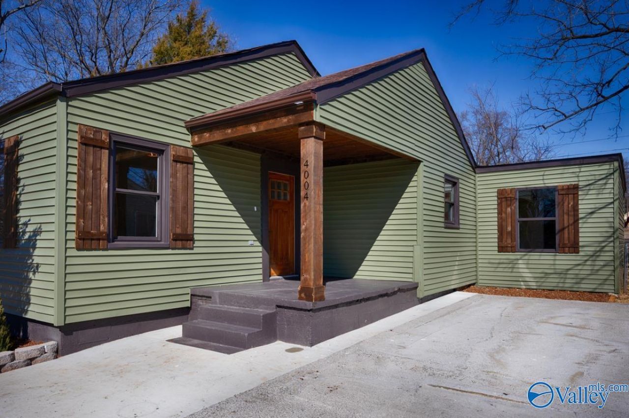 Beautifully renovated 1940's bungalow in the heart of Huntsville! This 3 bed/2 bath gem has been completely remodeled & is loaded with custom touches. Great Room features a vaulted ceiling w/wood beam & beautiful hardwood flooring. The modern eat-in Kitchen boasts shaker cabinets, tile backsplash & granite countertops. Wainscoting in Dining. Newly added Bedroom #3 has its own bath w/tile shower. NO CARPET in house. Also features tub w/tile surround in Hall Bath, gorgeous accent wall in Primary Bedroom, contemporary lighting - plus huge, private backyard. New HVAC, water heater, appliances, cabinets, plumbing/electrical & more! Prime Location! Only minutes to Stovehouse, UAH, & downtown HSV!