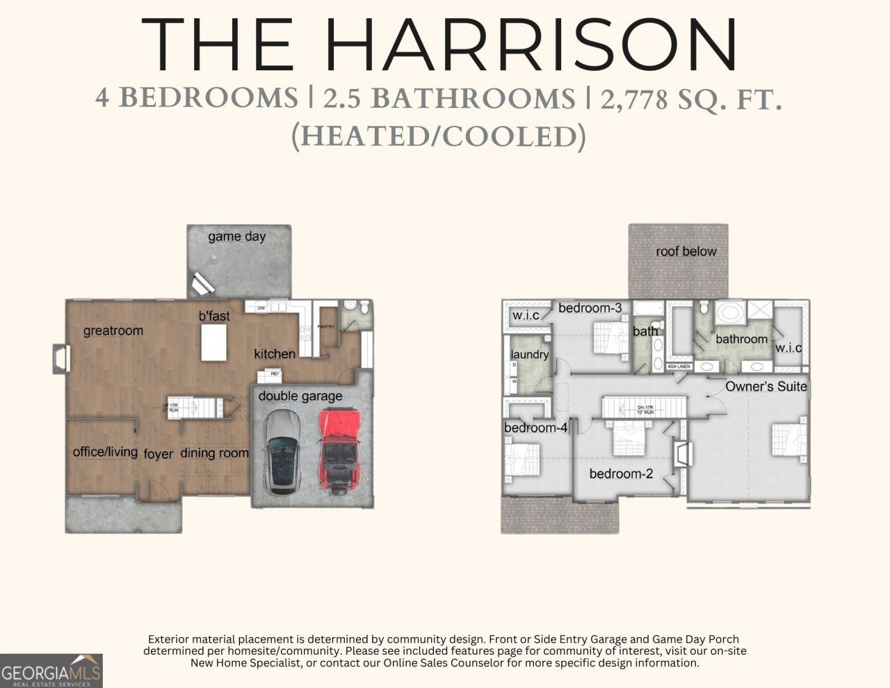 Welcome to O'Brien Farms in Warner Robins, Georgia, a welcoming Hughston Homes community designed for comfort, style, and everyday living. Introducing the Harrison C Floorplan, offering 2,778 square feet of thoughtfully designed living space with 4 bedrooms and 2.5 baths. The Harrison blends timeless design with modern functionality, creating a home that feels both stylish and inviting. From the moment you enter, the inviting foyer sets the tone, flanked by a formal dining room featuring a coffered ceiling and rich architectural detail. A bright flex space offers versatility for a home office, study, or creative retreat. The spacious great room, anchored by a wood-burning fireplace, flows seamlessly into the heart of the home. The open-concept gourmet kitchen is designed for both everyday living and entertaining, featuring abundant cabinetry, recessed lighting, gorgeous countertops, a tiled herringbone backsplash, an electric cooktop, a single oven with microwave, a stainless-steel vent hood, and a luxury dishwasher. A large center island opens to the breakfast area and great room, perfect for gathering, meal prep, or casual dining. The walk-in pantry provides generous storage. Just off the garage, the owner's entry showcases Hughston Homes' signature drop zone with built-in cubbies, creating the perfect catch-all with easy access to the conveniently located half bath for guests. Upstairs, retreat to the expansive owner's suite, featuring a vaulted ceiling and cozy electric fireplace, creating a true private sanctuary. The owner's bath offers a relaxing garden tub, tiled shower, vanity, and dual walk-in closets. Additional bedrooms are generously sized with vaulted ceilings and ample closet space, while the hall bath and upstairs laundry room are centrally located for convenience. Enjoy luxury flooring throughout the main living areas, along with numerous Hughston Homes included features throughout. Outdoor living shines with the signature Game Day Patio, complete with a wood-burning fireplace, TV pre-wire, all-weather surround sound speakers, and a ceiling fan, ideal for fall football weekends or year-round entertaining. Centrally located, O'Brien Farms offers the perfect blend of comfort, convenience, and quality craftsmanship. Come experience O'Brien Farms in person and find your perfect fit.