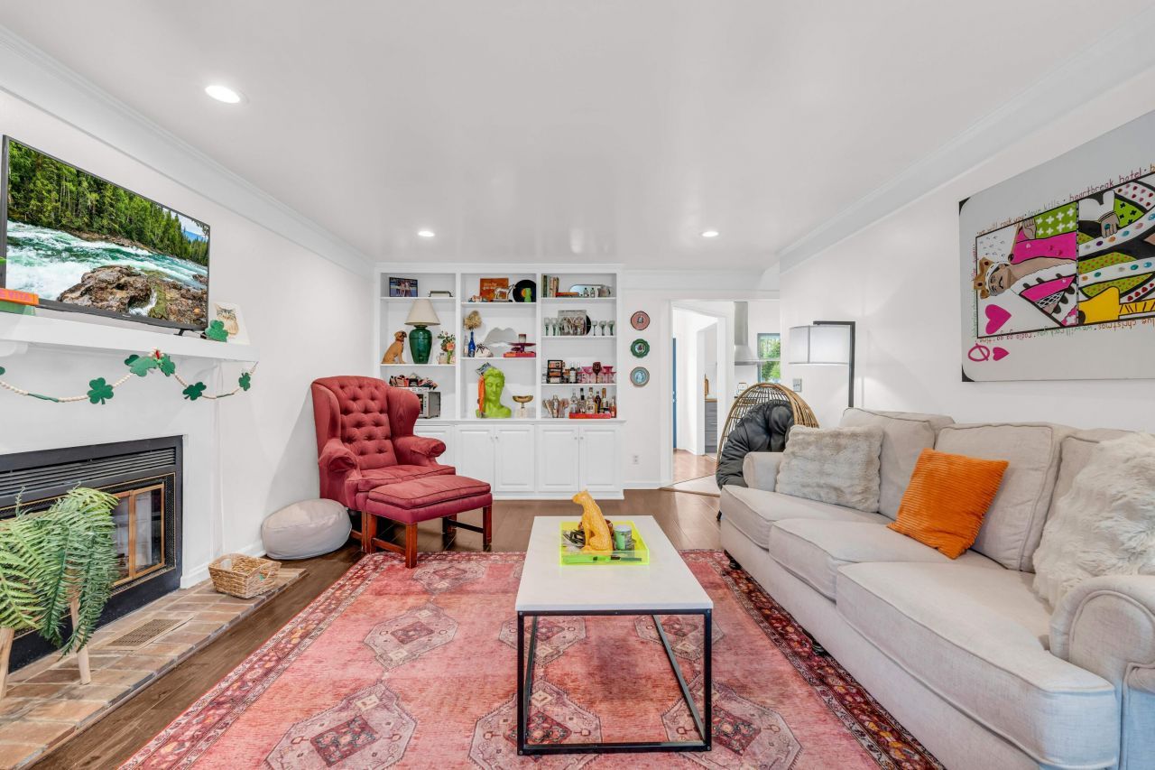 Traditional charm blends seamlessly with modern updates in this 4-bedroom, 3-bath home, featuring a stunning, light-filled kitchen that overlooks the backyard and opens to the dining area. The main-level primary suite offers convenience, while two separate stairwells provide privacy with additional bedrooms, bonus space, and baths upstairs. Gold finishes throughout add a touch of elegance, and a large fenced yard, ample parking, and a sought-after Timbercove location complete the home.
