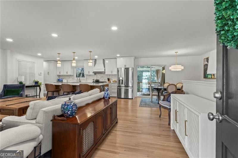A rare opportunity to own a fully transformed 4-sided brick ranch, perfectly positioned in one of Smyrna's most convenient locations. No detail has been overlooked in this meticulous renovation, where timeless craftsmanship meets modern sophistication. At the heart of the home lies a true showpiece kitchen featuring stainless steel gas cooking range, exquisite Taj Mahal quartzite countertops and an over-sized stain-grade island that invites both culinary creativity and effortless entertaining. An appliance garage keeps surfaces pristine, while custom soft-close cabinetry flow seamlessly into the sun-lit living and entry spaces. A well-appointed mudroom and side-by-side laundry suite complete the main-level living! The bedrooms on the main floor include two beautifully appointed guest bedrooms with spa-inspired hall bathroom, alongside a serene primary suite featuring a generous walk-in closet and a fully renovated en-suite bathroom designed for everyday indulgence. Expansive living and dining areas open to a large covered outdoor deck - the perfect backdrop for leisurely mornings and refined gatherings - overlooking a fully fenced backyard blanketed in lush, established emerald zoysia. The fully finished terrace level offers remarkable flexibility as a guest suite, au pair/in-law quarters, or elite wellness space. Complete with a stylish kitchenette, wet bar, two additional bedrooms, a full bathroom and extraordinary closet and storage space. This level elevates the home's value immeasurably. An oversized parking area accommodates multiple vehicles with ease, while two additional outbuildings provide exceptional storage. All of this, just minutes from the boutique charm of Smyrna Village and the world-class dining and entertainment of The Battery Atlanta!