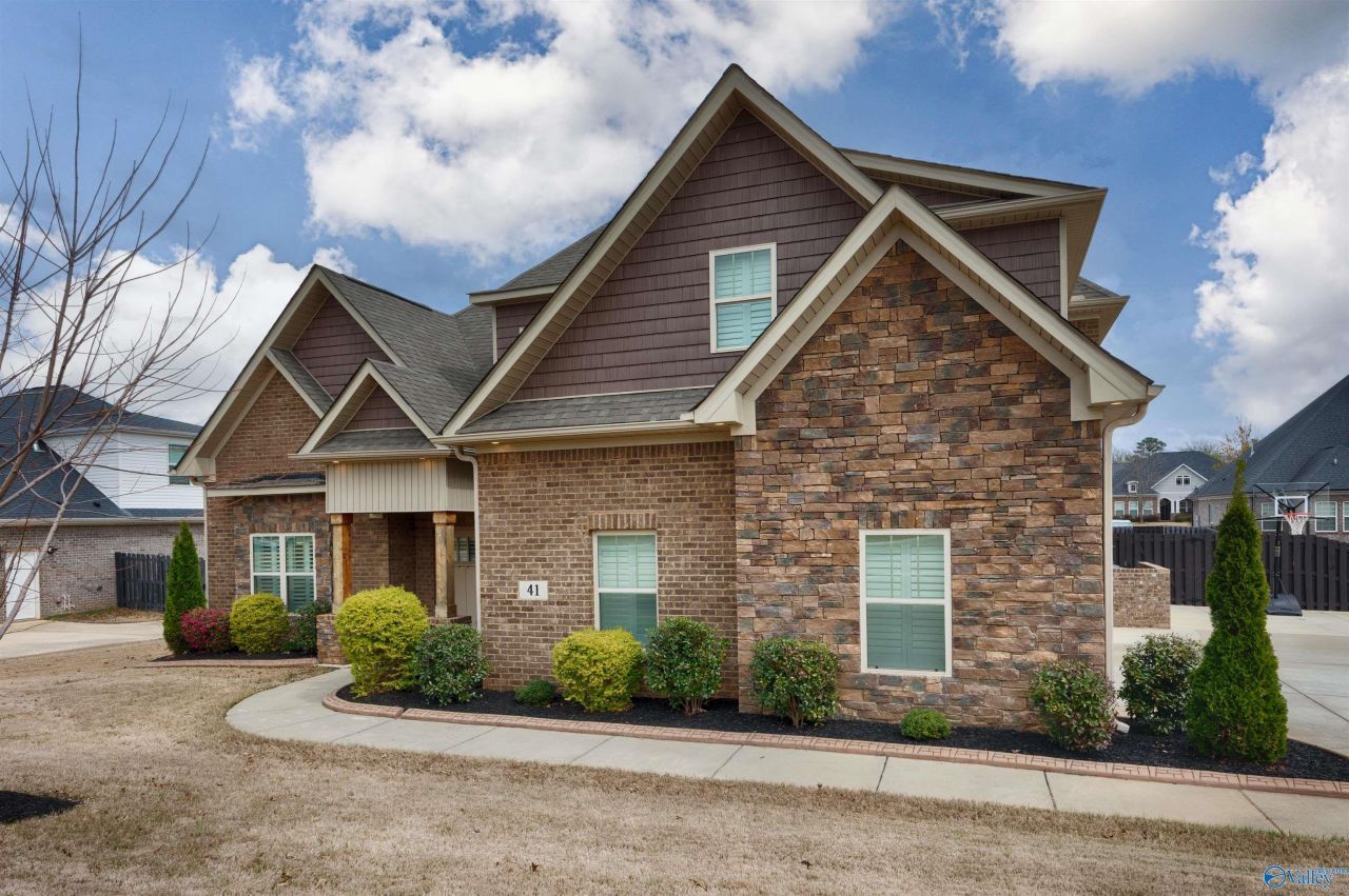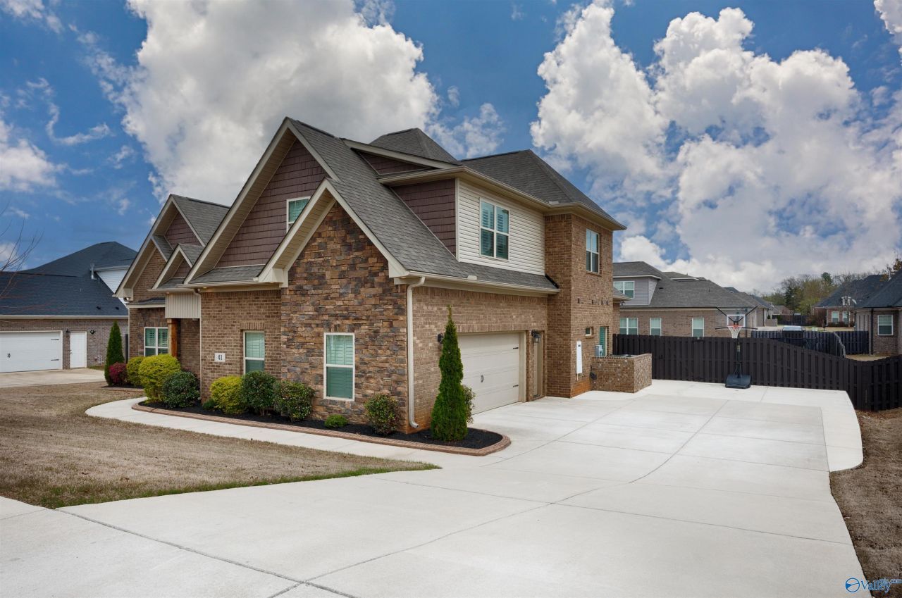 Beautiful 4-bedroom, 4-bath home built in 2021 located in the desirable Greenbrier Woods community. The main-level primary suite offers a spa-like bath with soaking tub, separate shower, and walk-in closet. The open-concept living area features high ceilings, crown molding, fireplace, and durable LVP flooring. The kitchen is designed for entertaining with granite countertops, gas cooktop, large island, walk-in pantry, and spacious dining area. Enjoy outdoor living on the spacious deck overlooking the backyard, perfect for relaxing or hosting gatherings with family and friends. Community amenities include pool, playground, and clubhouse. Madison City Schools! Move in Ready!