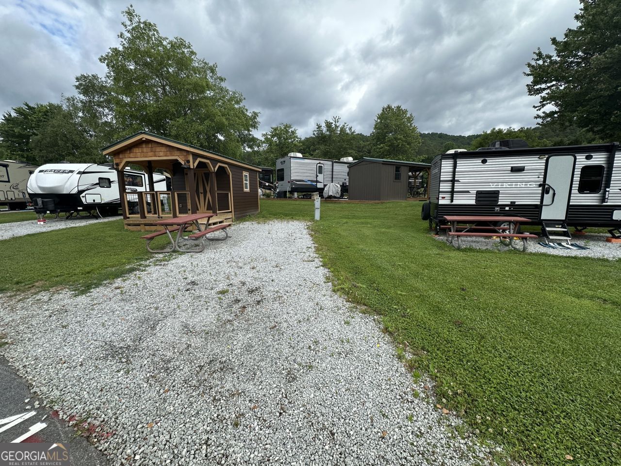Say hello to your new retreat in the mountains. Located in the heart of Dillard Ga this Rv lot is perfect for the outdoor enthusiast or someone looking to get some shopping and dining done in downtown Clayton. The resort's central location to NE Georgia and Western Carolina makes it a great home base for anyone who loves to travel the mountains. Don't want to travel? That's fine too, the River Vista RV Resort has it all: swimming, spa, clubhouse, fitness center, shop and doggie park! You can even rent out your spot when you are not staying there through the resort's rental program. The current owner has done extensive work on his lot by adding a large motorcycle out building with front porch and plenty of space to store your bike or anything else you might have. This out building was custom made to accommodate a motorcycle and blends perfectly with the aesthetic of the the resort. Give us a call today to make this mountain oasis your own! There is a 2% buyers fee for any lot purchased that is paid to River Vista by the buyer.