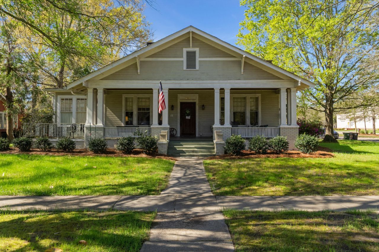 Classic Downtown Hattiesburg charm with space, character, and a floor plan you almost never find! This historic home sits on a deep lot with mature trees, a wide front porch, and over 3,000 square feet of living space including multiple living areas and five bedrooms!The exterior immediately stands out with the full-width covered front porch supported by square columns, painted brick piers, and a wood beadboard ceiling. There is plenty of room for rocking chairs, porch swings, and seating areas, and the porch overlooks the shaded front yard and sidewalk-lined street in the heart of downtown. The backyard includes a fenced patio area plus additional green space behind the house.Inside you will find tall ceilings, original wood floors, wide trim, transom windows, and large double-hung windows that bring in natural light throughout the home. The central dining room features hardwood flooring, crown molding, and a fireplace with a painted mantel, with glass-paneled doors leading to the main living room. The living room is oversized and connects directly to the large and bright sunroom that runs along the side of the house.The kitchen has black and white checkered flooring, long counters with abundant cabinet storage, open shelving, and a stainless dishwasher, with space for a breakfast table near the rear hall. Just off the kitchen is a utility area and access to the back of the home.The first floor includes several bedrooms with hardwood floors, tall windows, and wide baseboards, along with multiple full baths. The layout allows for flexible use of rooms for bedrooms, office space, or additional sitting rooms depending on needs.Upstairs you will find a large primary bedroom with dormer ceiling lines, two walk-in closets, and a private bath, along with another oversized bedroom on the second floor.Outside, the backyard includes a concrete patio and additional yard space extending behind the garage, giving this property more depth than most downtown lots.Located in Historic Downtown Hattiesburg, this home is surrounded by established homes, sidewalks, and mature trees, with convenient access to The University of Southern Mississippi, downtown restaurants, and Midtown. Schedule your private viewing of this historic Hattiesburg home today!