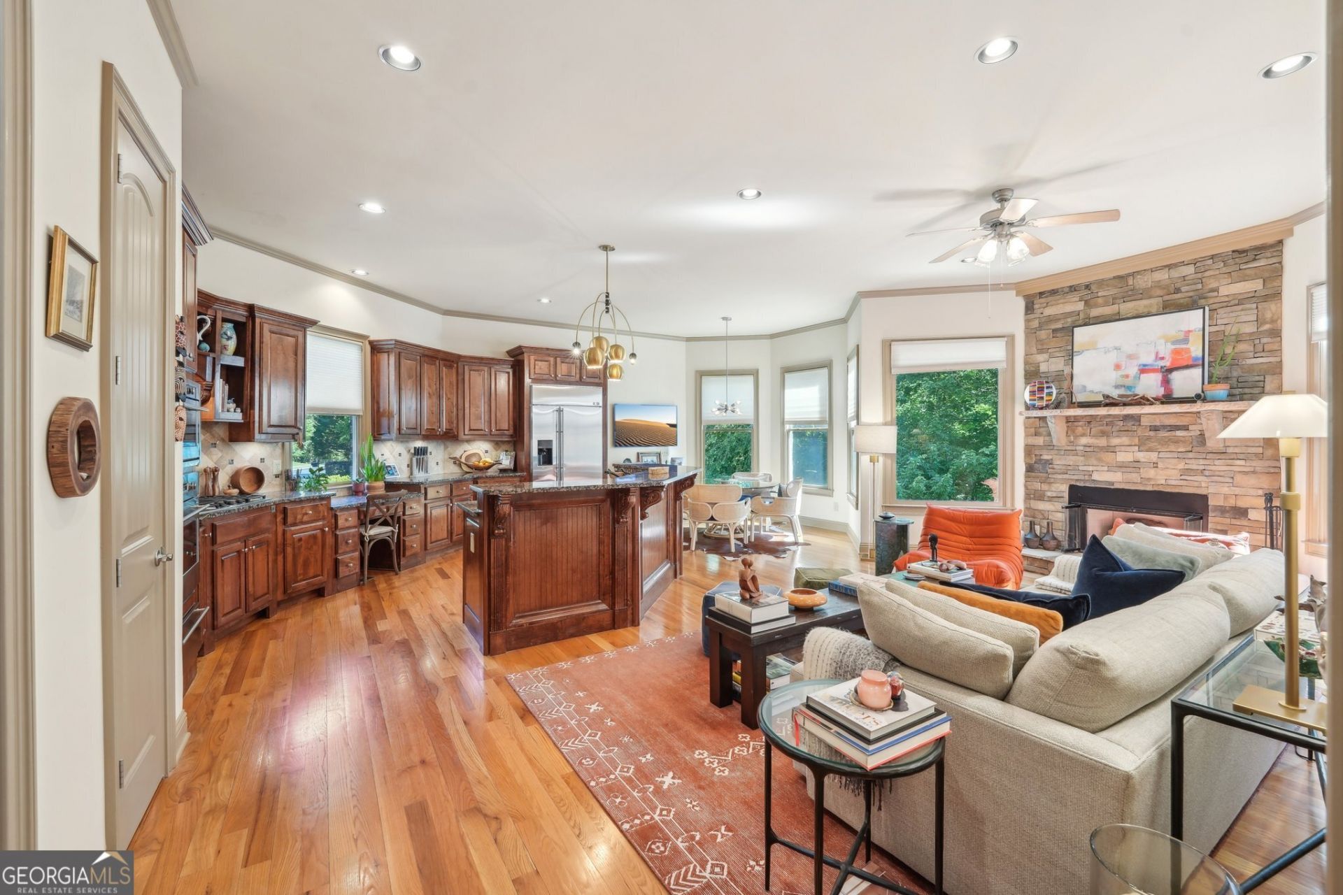 Just minutes from Port Royale and Gainesville Marinas, this beautifully maintained 4-sided brick home combines timeless curb appeal with an unbeatable location in the sought-after Cumberland on Lanier community. Step inside to a soaring two-story foyer that sets the tone for the bright, open floor plan beyond. Natural light pours through expansive windows across the back of the home, framing serene views of the surrounding landscape and creating a warm, welcoming atmosphere throughout. The heart of the home is a thoughtfully designed kitchen complete with a sunny breakfast area and an inviting keeping room - perfect for casual mornings or relaxed gatherings with family and friends. The oversized main-level master suite is a true retreat, offering his-and-hers walk-in closets, a spa-inspired whirlpool bath, and a private sitting room with peaceful backyard views. Upstairs, three additional bedrooms, a media room, and a generous multi-use space provide flexibility for a playroom, hobby room, or off-season storage. The unfinished terrace level spans over 2,000 square feet - a blank canvas ready to become an in-law suite with private entrance, a home theater, gym, or expansive entertaining space. There's also potential to add a private path from the backyard directly to the lake. Recent exterior improvements include a replaced retaining wall and stairs, enhancing both functionality and long-term durability. Enjoy seasonal Lake Lanier views and access to community amenities including a clubhouse, swimming pool, and newly converted pickle ball courts. Please note the HOA annual fee will reduce to $1,680/year starting July 1, 2027.