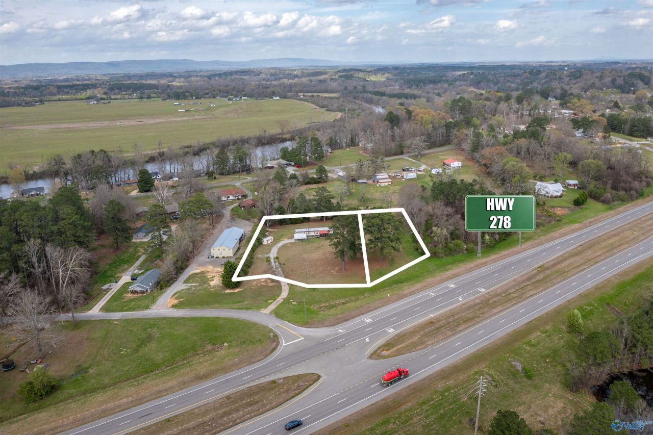 Prime commercial property located on Highway 278 in Hokes Bluff, offering 2 acres of excellent visibility and access in one of the area's fastest-growing and most sought-after communities. The .5-acre commercial lot comes with an additional 1.4-acre adjoining parcel zoned residential, providing extra space and flexibility. The residential parcel could be taken before the city board after purchase to request potential rezoning for expanded commercial use.