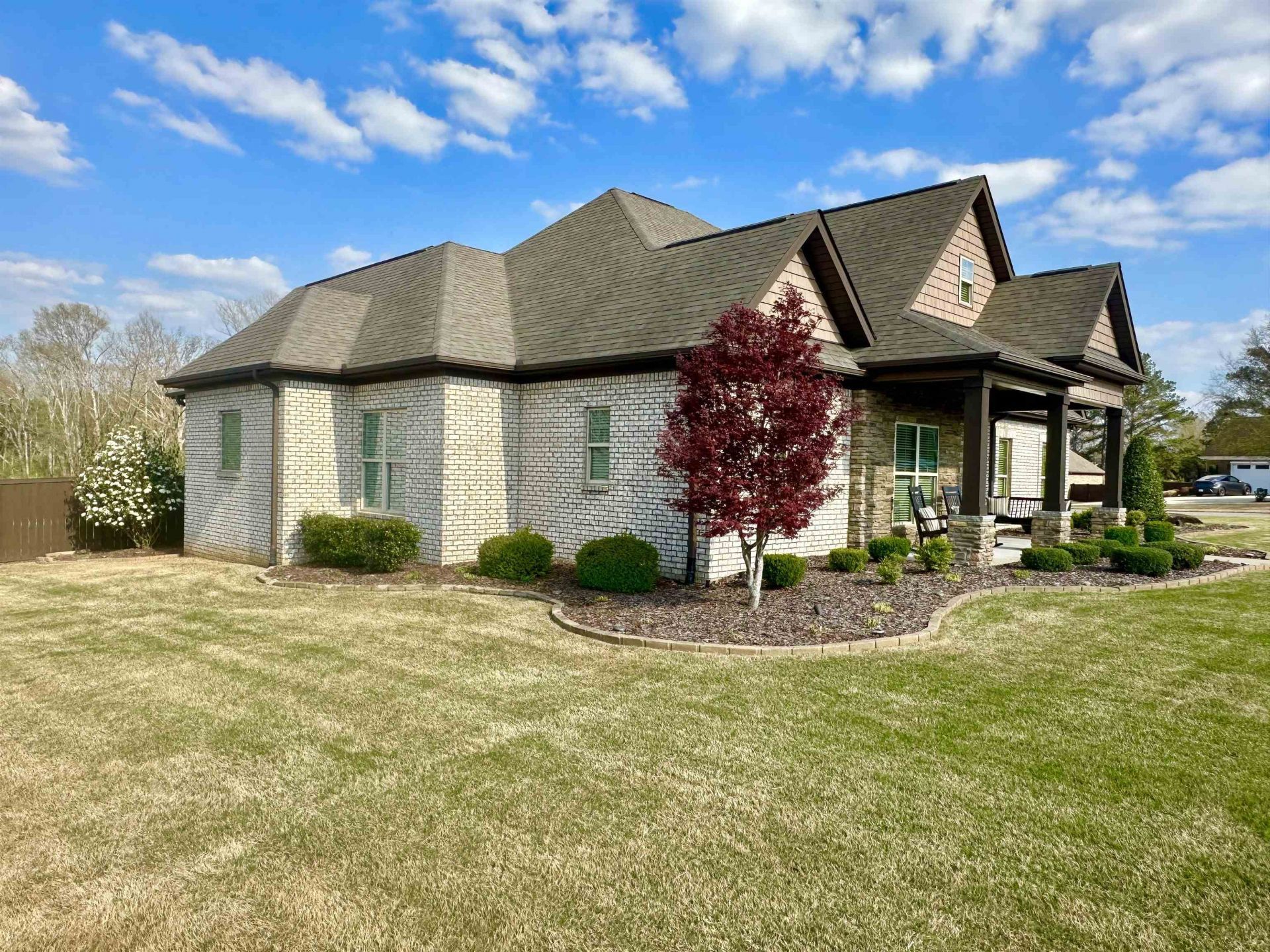 CUSTOM BUILT 2018 BRICK & STONE DREAM HOME offers 2,477 sq ft all on ground level . No steps just walk right in. The interior is PRISTINE with beautiful HARDWOODS, CERAMIC tile. Enjoy a VERY SPACIOUS OPEN FLOOR PLAN featuring a living room with ROCK FIRE PLACE w/built ins and crown molding, CUSTOM kitchen, and EXTRA LG dining area with 10 ft ceilings and highlighted by a full wall of windows.. A Large private Owners Suite includes a WALK-IN ceramic shower, GARDEN TUB, and a CLOSET ROOM. additional two bedrooms offer Jack & Jill Bath. Plus Guest Bath. A Large Laundry room with a full wall Pantry. The oversized garage features 9-ft doors for larger vehicles, and a third bay for a workshop & mower. A stairwell leads to unfinished space above for future expansion. But the best part is RELAXING and watching the Ballgame on the HUGE COVERED PORCHES and BREEZEWAY overlooking an EXTRA large sodded corner lot and sidewalks for easy strolls. Drive by & ck it out!