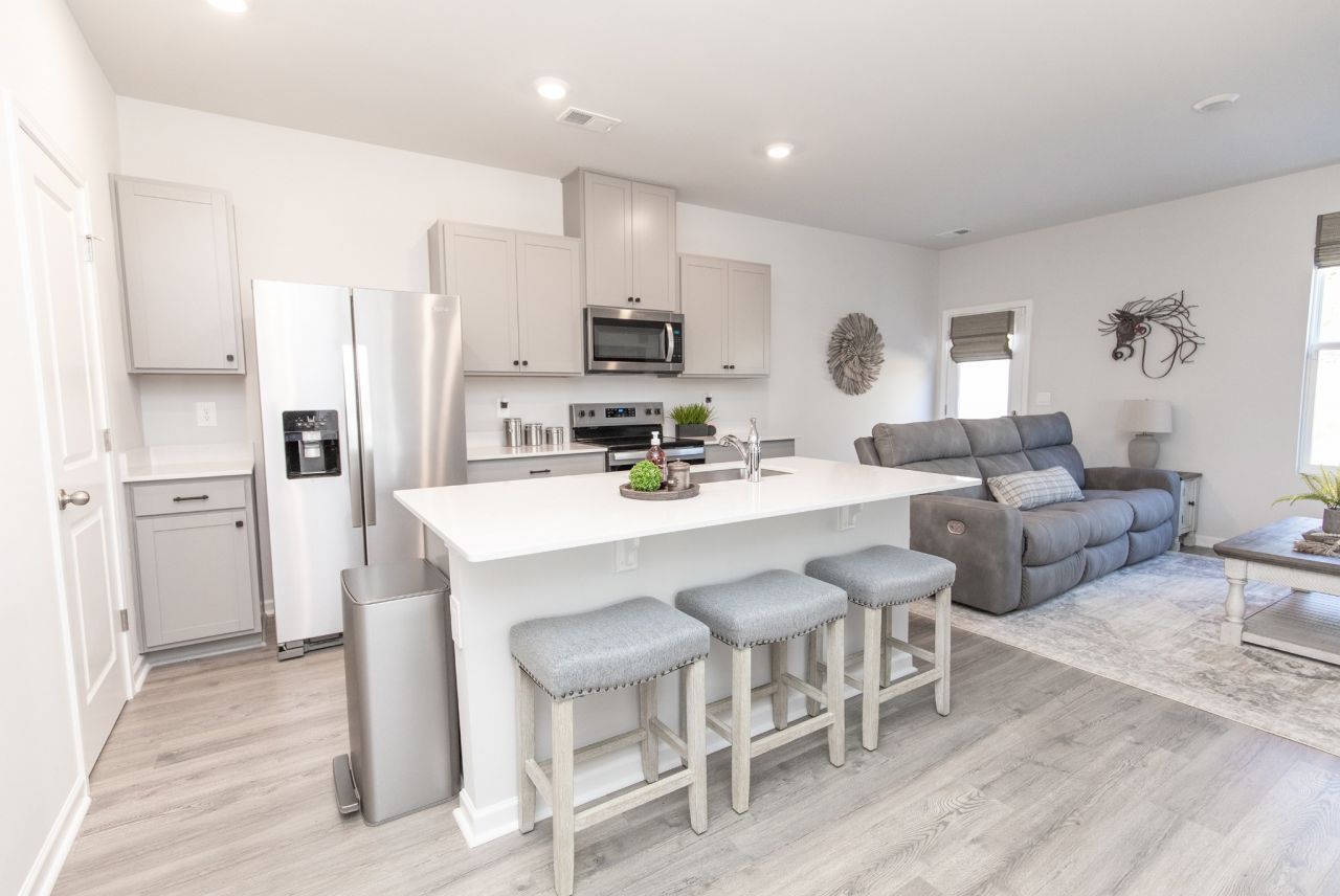 END UNIT + PRIME LOCATION within River Landing! This beautifully maintained 'Medford townhome is ideally positioned near the community entrance and a short distance to the pool, playground, and central mailbox. Offering both convenience and lifestyle in one of Murfreesboro's most desirable newer communities. Inside, you'll find 3 bedrooms, 2.5 baths, and an open-concept layout designed for easy everyday living and entertaining. The kitchen features quartz countertops, stainless steel appliances, and generous cabinet space, all flowing seamlessly into the main living and dining areas. Natural light pours in thanks to the added windows of this end unit, creating a bright and inviting atmosphere throughout. Upstairs, the spacious primary suite includes a double vanity, walk-in closet, and private bath, while two additional bedrooms offer flexibility for guests, a home office, or hobbies. Step outside to enjoy the covered patio, perfect for morning coffee or unwinding in the evenings; and a private tree lined backyard. River Landing offers resort-style amenities including a pool, playground, walking trails, and kayak/canoe launch along Stones River; all just minutes from shopping, dining, and medical facilities. Move-in ready and available now! Skip the wait and start enjoying everything this community has to offer!