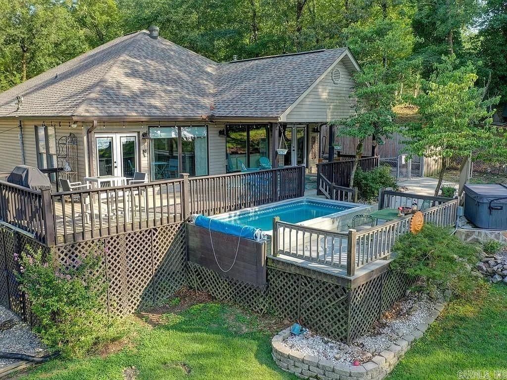 FULLY FURNISHED 1,968+/- SF 3 Bedroom, 2 Bath Home on Lake Hamilton !! Beautiful waterfront luxury home with half-acre and 172' of waterfrontage. The main home is 3 bed, 2 bath with modern updated style, open floor plan. covered boat dock, pool, hot tub. GUEST COTTAGE is a Huge Addition offering a Cozy 532+/- SF and is a perfect small vacation rental. Small loft bedroom area, full bath and full kitchen open floor plan. Contact Fowler Auctioneers for more information. Visit www.fowlerauctioneers.com for further details.